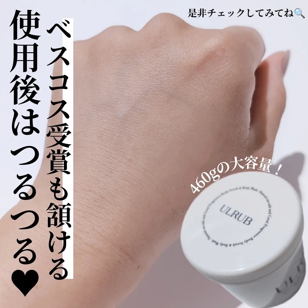 - 毎日のボディケアがもっと手軽に。 大注目の香水スクラブ『ULRUB』から待望のお求めやすい価格”2970円”が新登場! ※230g 上質なまま、よりお求めやすい価格に 2,970円(税込) 沖縄生まれの天然素材で叶える つるすべ美肌への近道 ■ 選ばれる3つの理由 微細な沖縄の塩と天然サンゴ粉末(スクラブ剤)配合で ゴワつく角質もやさしい使い心地でオフ。 ざらつきをケア! 敏感肌さんにも配慮した処方。 毛穴汚れを吸着し 透明感のある素肌へ。 毎日続けやすい、ちょうどいいサイズ感 ぜひ、この機会にお試しください♪