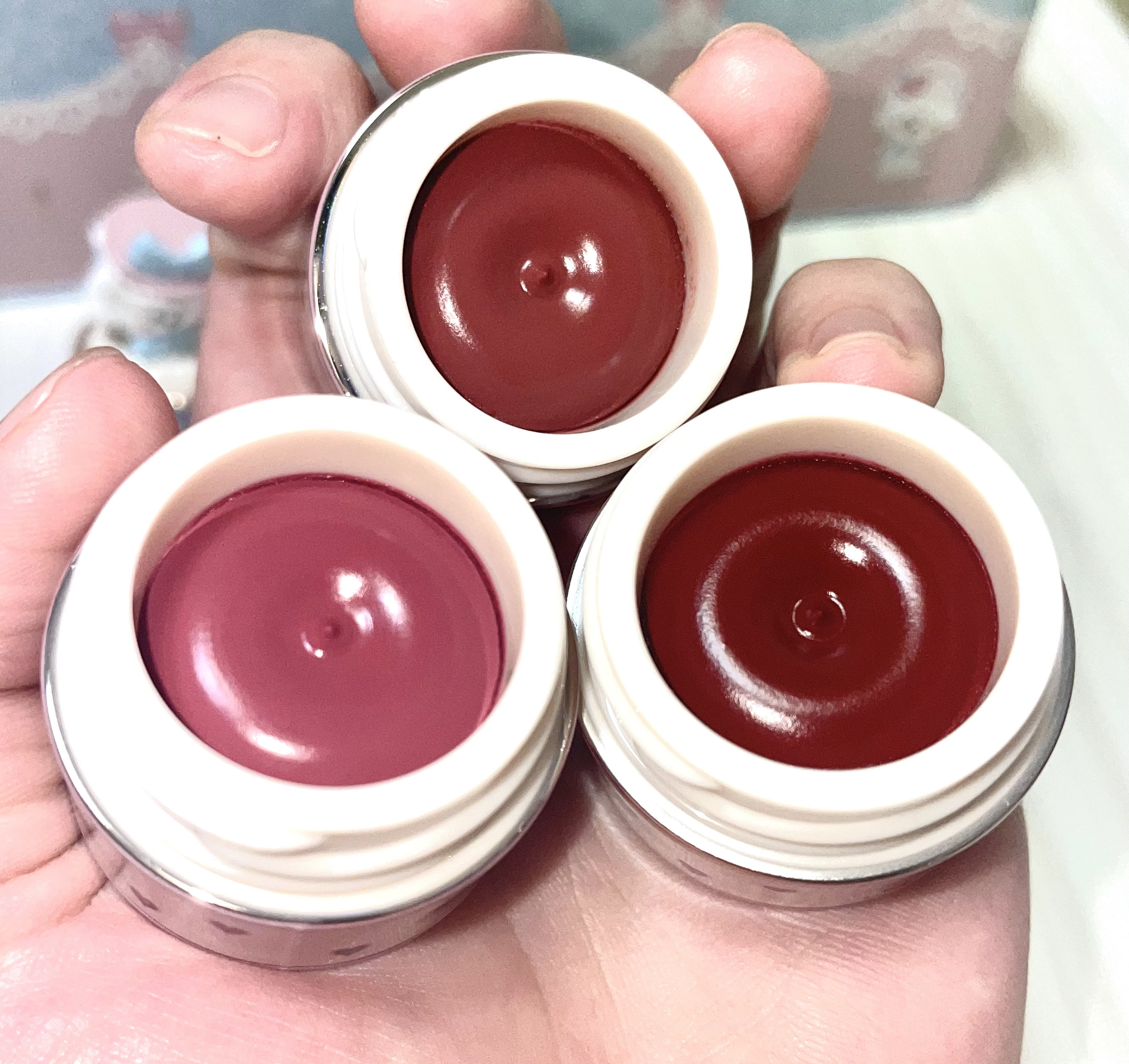 チョコレートみたいなふわふわ質感のハートポット🫖💕 ミニブラシが付属されていてリップの部分と仕切られているので衛生的にも使えます❕🎀 dasiqueの方はふやふわでサラサラしたテクスチャーです❕ 伸びがよく1回でムラなく綺麗に乗ってくれます!