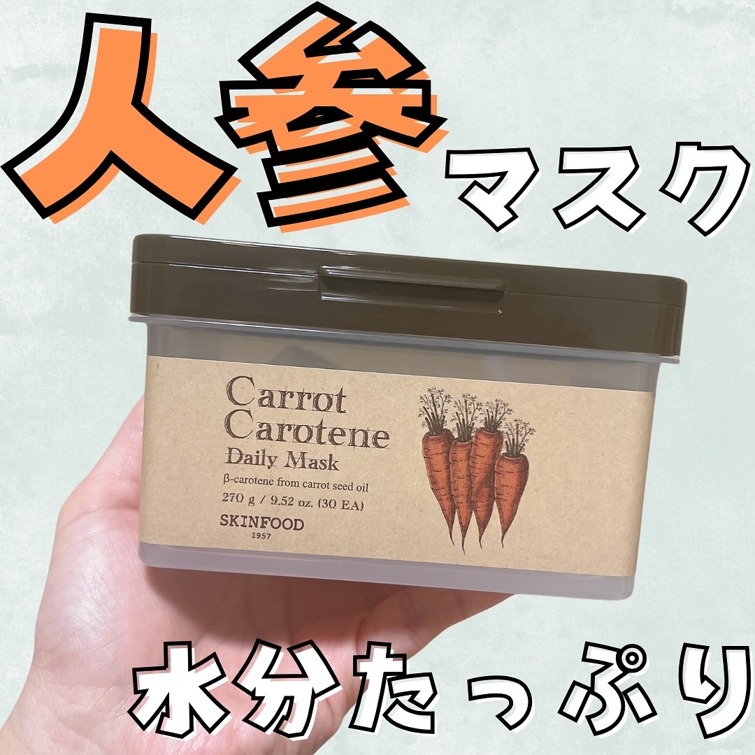 SKINFOODキャロットカロテンデイリーマスク韓国で大人気のスキンフードベストラインから新商品が登場🥕水分感たっぷりのマスクで肌にピタッと密着◎3分のクイックケアで水分チャージできるので夜はもちろん朝のメイク前にも使いやすい🪄爽やかな薬草の...