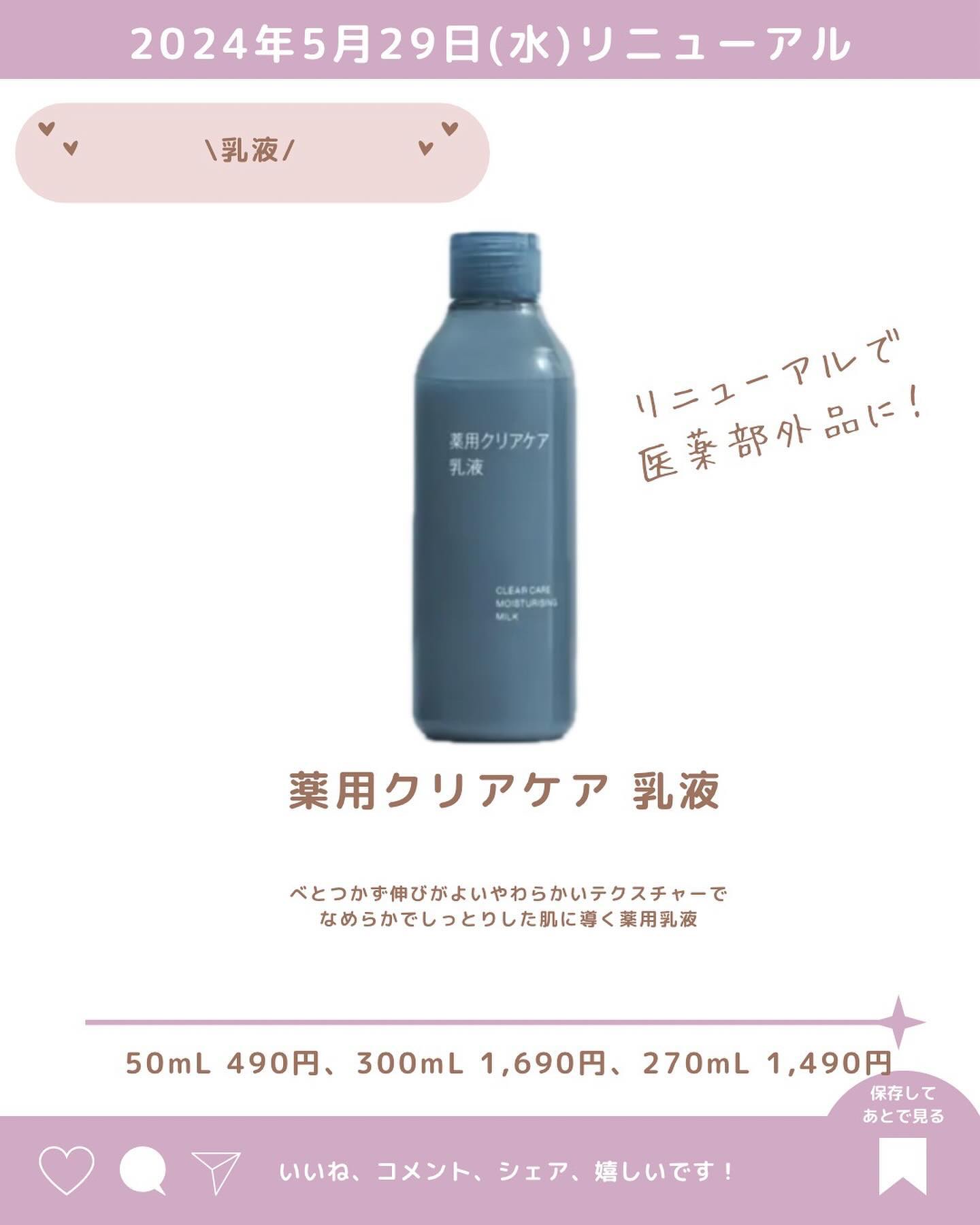 \夏にぴったりなさっぱり化粧水🧴✨/SNSでもバズっている無印良品のスキンケアシリーズ🤍今回は薬用クリアケア化粧水をご紹介します✨✔️無印良品薬用クリアケア化粧水本体300mlニキビや肌荒れを防いでくれる、天然由来成分100%の薬用化粧水🌱肌...