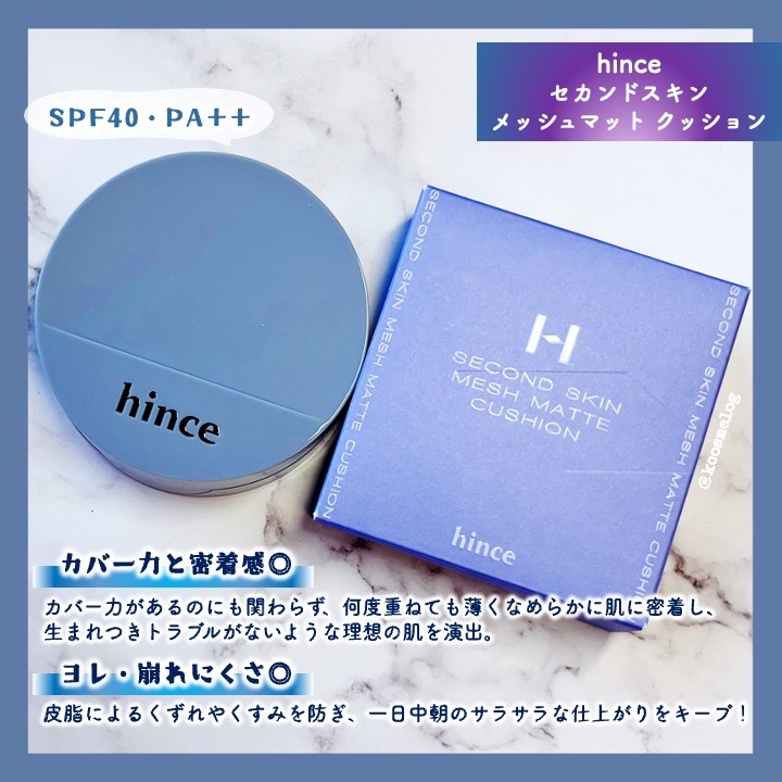 hinceセカンドスキンメッシュマットクッション 23マットに仕上がり軽いファンデ買ってみました❗マットなんだけどサラっと軽くて付け心地が良かったです‼素肌を綺麗に見せてくれて、薄いシミは隠れちゃうからなかなか優秀な印象です✨高カバーではない...