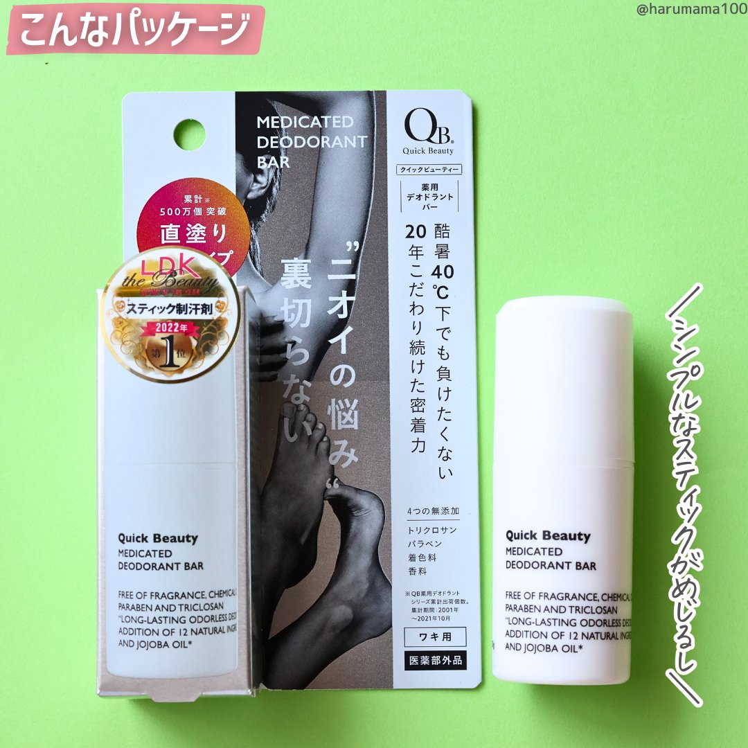 #PR#クイックビューティー@liberta_itemさまからいただきましたクイックビューティー薬用デオドラントバー表面サラサラ、ベタつき香り無くて◎夏本番はクセがないものが使いやすい🥹✨密着力が高く、汗・水・こすれ*に強く手を汚さず使えるス...