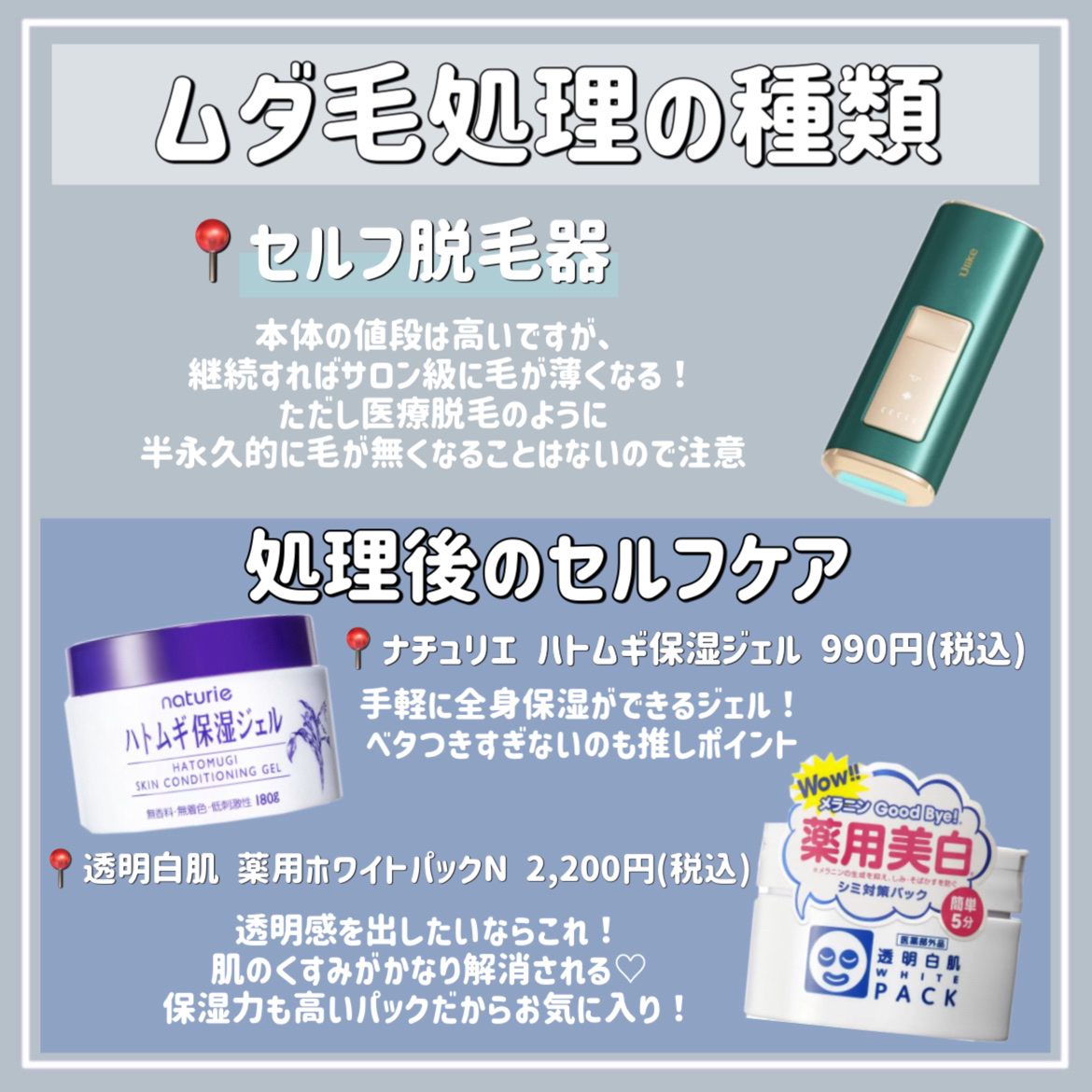 ムダ毛処理についてめっちゃ参考になった!! 最近忘れてるから今日しないと! 正しくしないと肌やばいことなるから気をつける! スカートを学校を着てるから足めっちゃ見えるからムダ毛の処理大事! あと足太いとめっちゃ強調されるからマッサージも毎日がんばる! 夏に向けて色々がんばる!!!