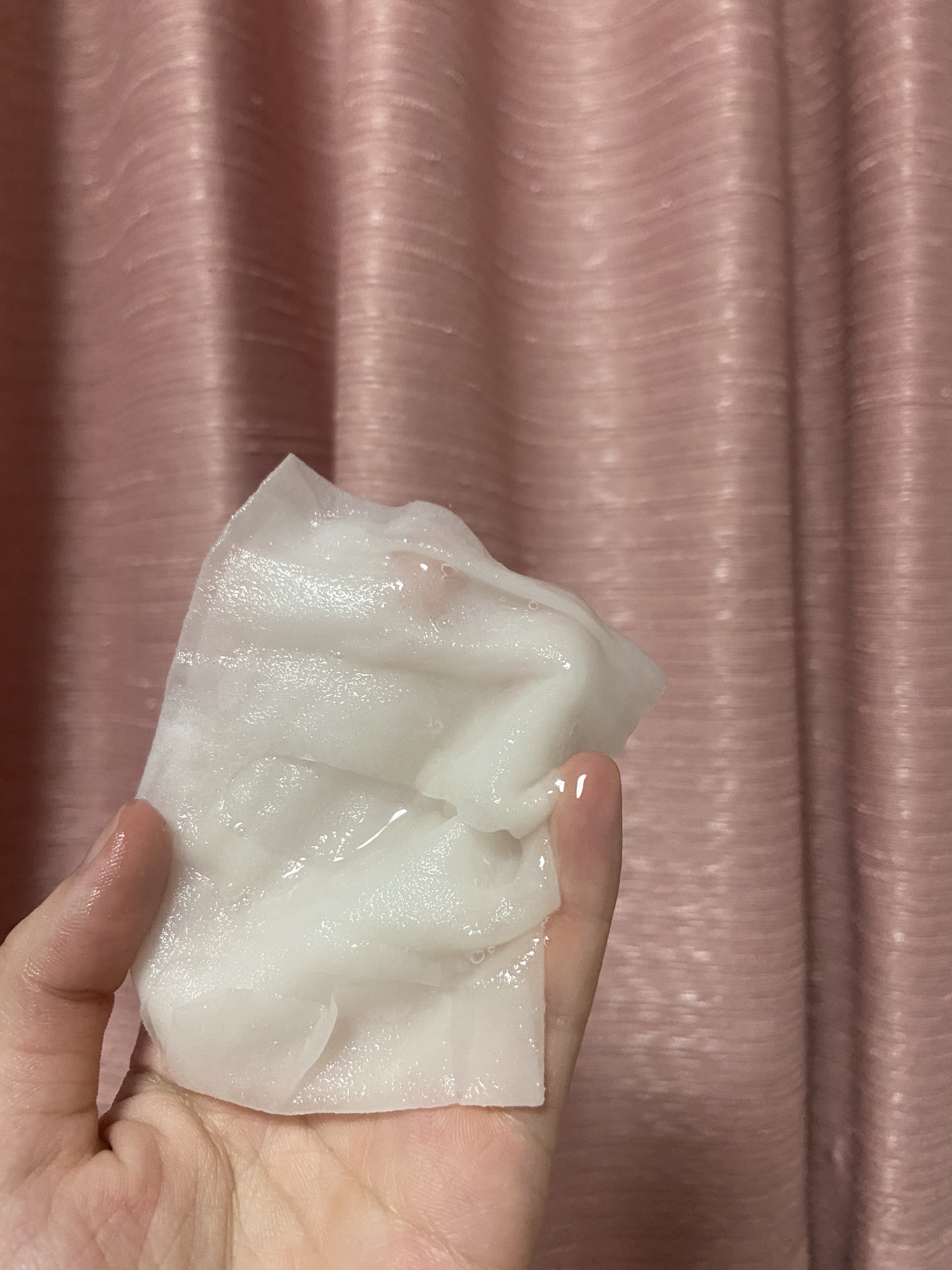 | シート自体の厚みはやや薄めでフィット力高し。 そして何よりとろとろの美容液がヒタヒタに…🥺 | 詳細を見る |
