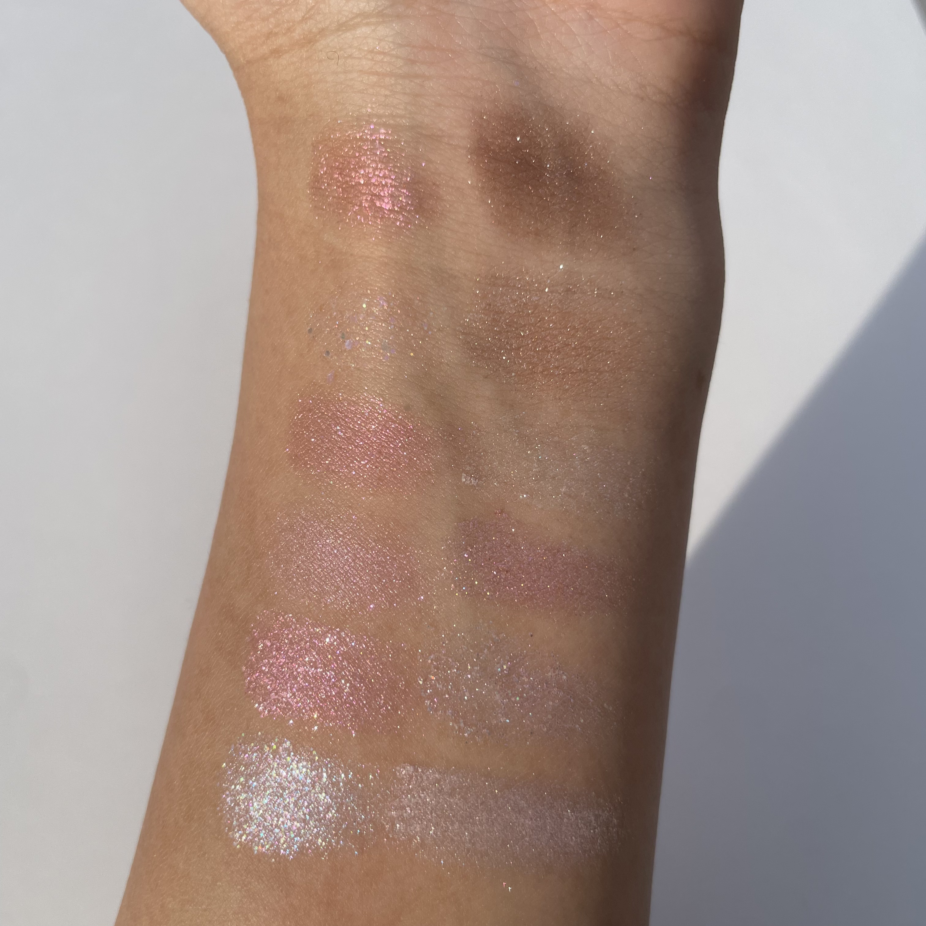 - ひとつのパレットにマット、シマー、グリッターなど多様な質感を贅沢に使用。塗る順序やカラーの組み合わせを変えるだけでデイリーメイクにも、特別な日のお出かけメイクにもできる優れもの。また粉飛びせず、まぶたにしっかり密着します。