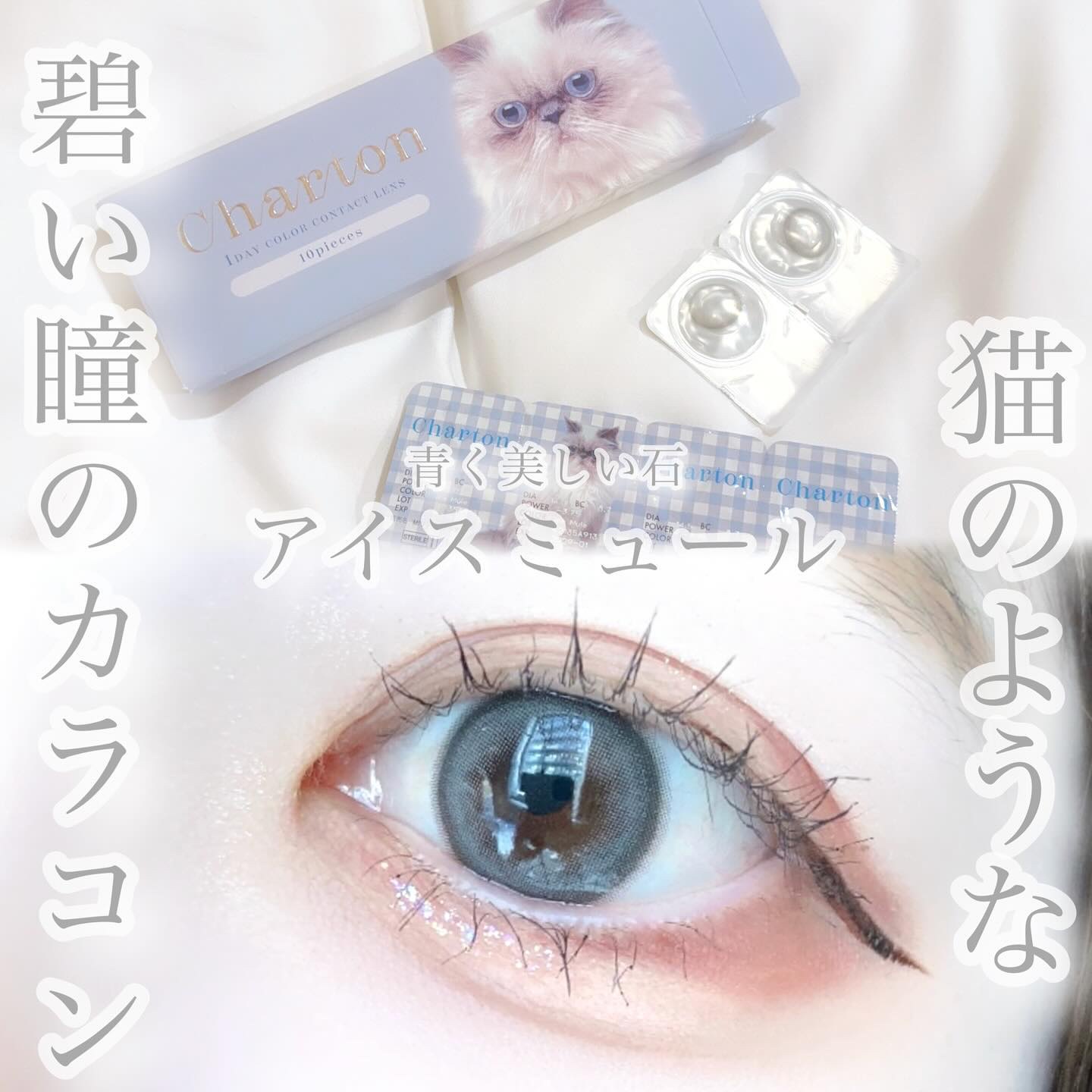 自分史上最強に可愛くいられる、麗しくも可愛らしい女の子をイメージして作られたブランドの”シャルトン”🩵🐈⬛ どのカラーも着けてみたらドット細かめで、瞳に馴染みやすかったのでテンションめっちゃ上がりました🤩☺️ レンズも可愛いんだけど、パッケージも内蓋(?)も使うのがもったいないくらい可愛いです🥺🐈⬛🩵