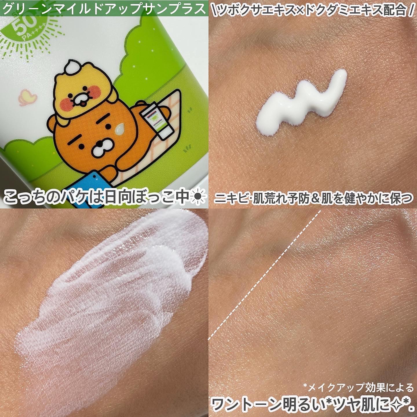 LDKのBestbuy賞にも選ばれたことがある日焼け止め✨ ピーチカラーなので、ほどよくトーンアップしてくれて、化粧下地としても優秀だなと思いました。 オリーブヤングで5年連続で日焼け止め部門を受賞しているほどの人気商品✨肌荒れや肌トラブルを抑えて敏感な肌を外部刺激から守ってくれるツボクサやドクダミ、紫外線による刺激から肌を守ってくれるピクノジェノール、肌のバリア機能を高めるビタミンDなど、スキンケア成分もたっぷり配合されていて、日焼け止めしながら肌ケアできるのがありがたいです。 密着感があるのに重たく感じないところが使いやすいんですよね〜(^^)