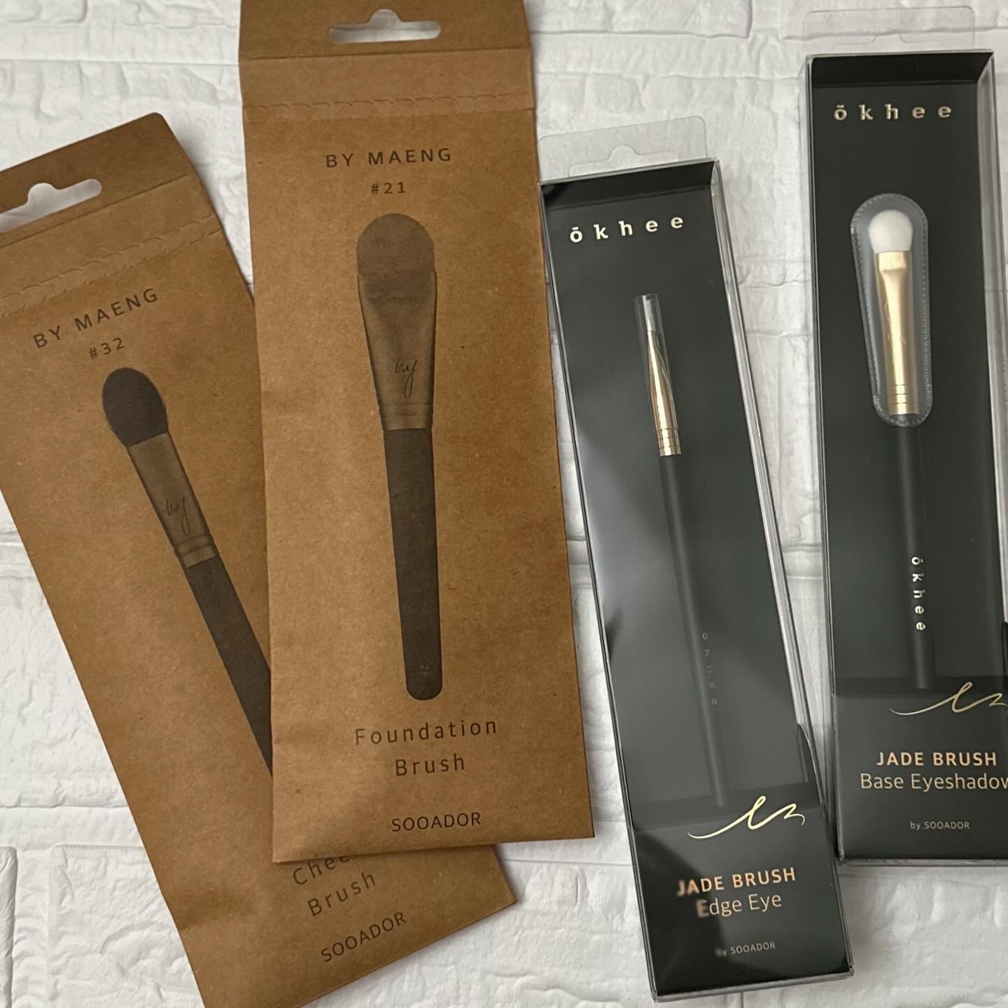 スアドールのメイクブラシ3種類をいただきました✨・okheeEdgeEyeBrushNUN05・BYMAENG#32・okheeNoseShadingFanBrushSUN03の3種類です。どれも高級感のあるブラシで使うだけでワクワクします🥺...
