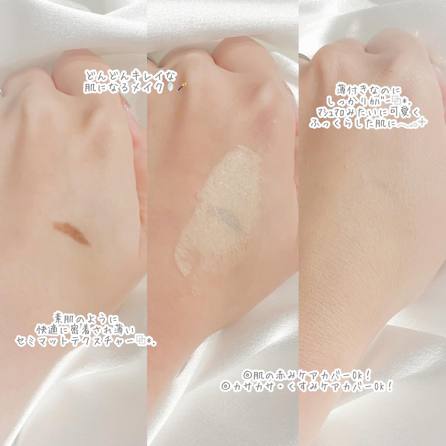 つけた感じがしないくらい軽くてサラサラ⟡.·*. ブラシでするとより自然に軽くつけれました! さりげなくキラッとするラメがほんとかわいい(*´ `) 自然なトーンアップで綺麗に見せてくれるのも💮