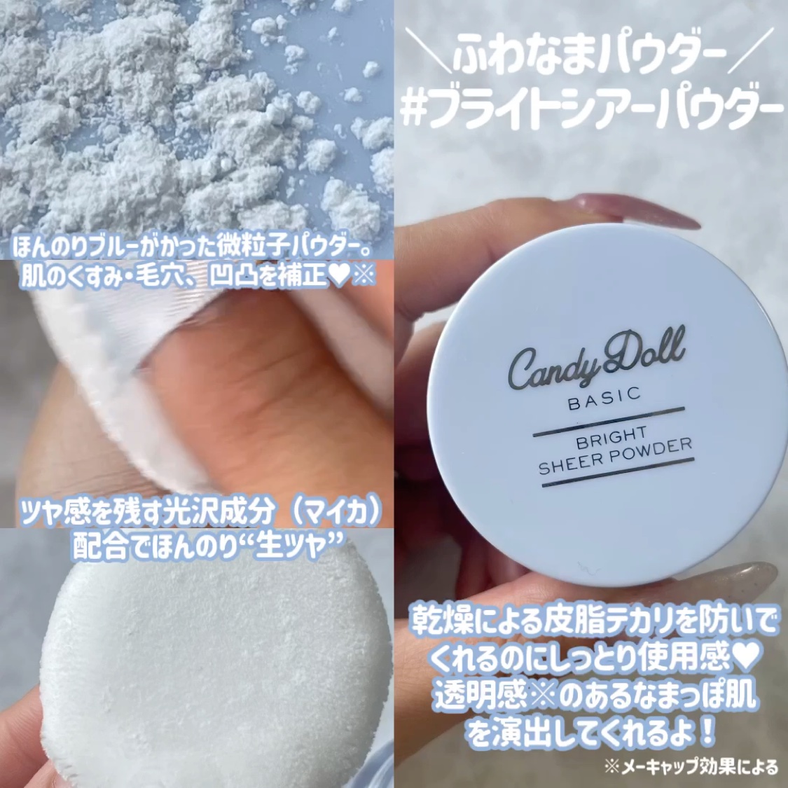 CandyDollの透明感盛れ*セット🪽🩵ブライトピュアルースパウダープリズムリッチブルーツヤ感ラメ&パール×くすみ補正*ブルー×トーンアップホワイトのこだわりいいとこどりカラーがくすみを飛ばして透明感UP*こだわり比率の高輝度ガラスラメと超...