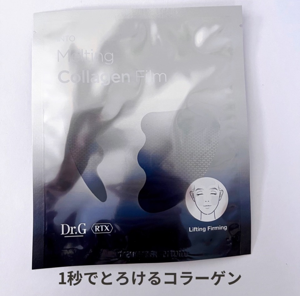 ブラックスネイル配合で、肌にしっかり栄養を与えてくれるよ!ゼリー状なのに吹きかけるときめ細かいミストに😳✨ 溶けてえるコラーゲンライルム😳✨ フィルム自体がコラーゲンのかたまりになっていて、洗顔後RTXセラムを塗った後に、コラーゲンフィルムを肌に貼り、ミストセラムをふりかけて使用するよ! ミストを吹きかけるとすーっとお肌に溶け込んで不思議な感覚✨ 手のひらに吸い付くようなもっちり感でハリも感じられて◎👌✨