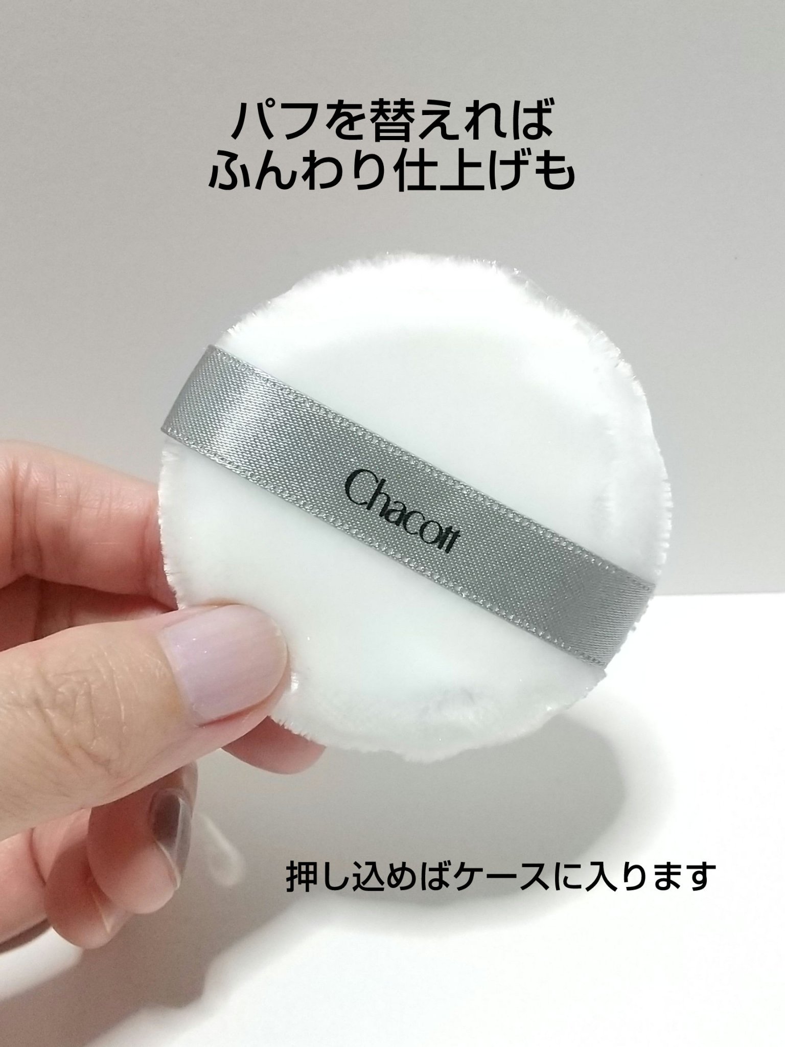 チャコット・コスメティクスパウダーパフステージメイクで有名なチャコットのパフを買ってみました。いつもは付属の薄いパフを使っています。それに比べると2~3倍の厚さがあり、肌触りもふんわり♪粉のつき具合もやっぱりいいですね。ただブラシと違って保存...
