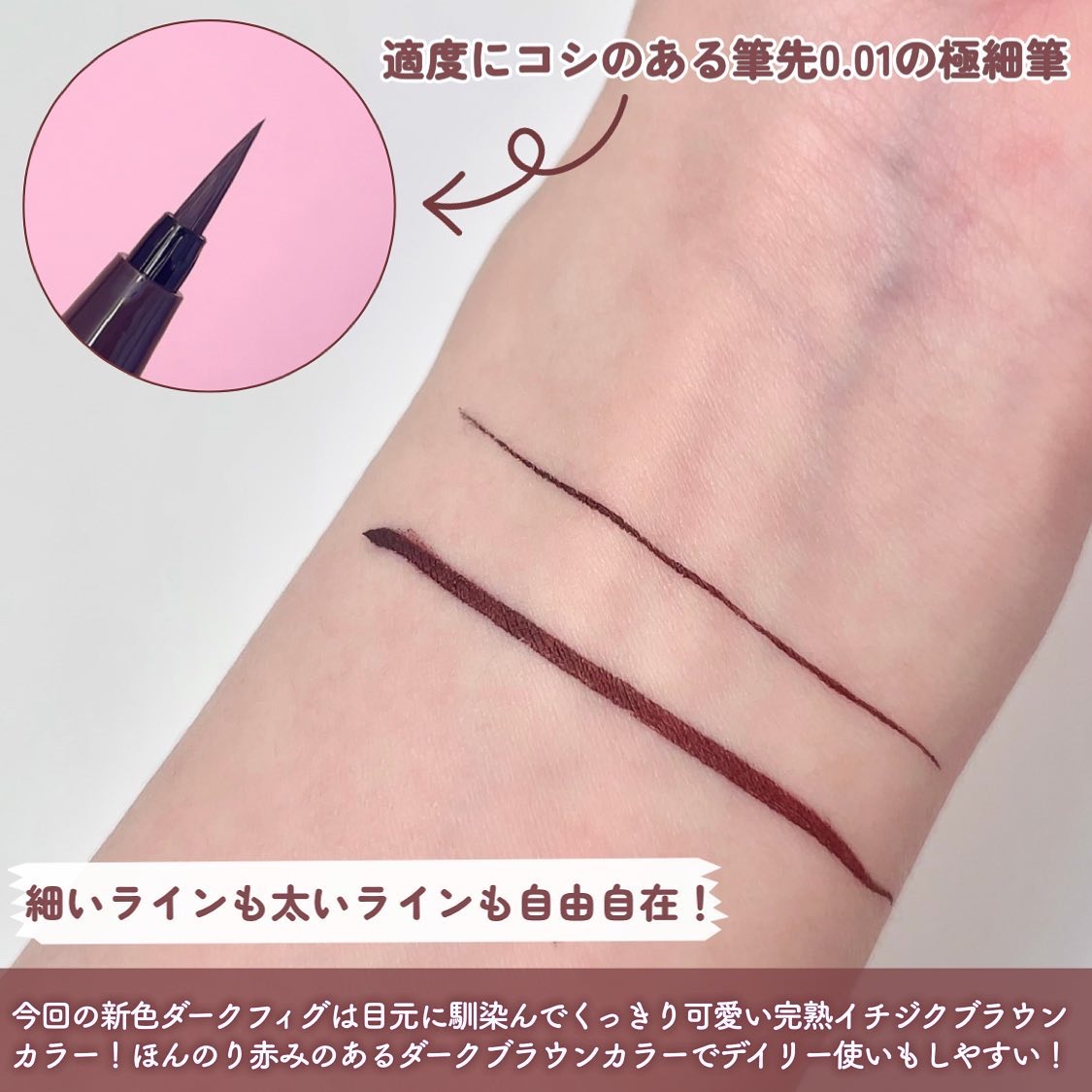 D-UPシルキーリキッドアイライナーWPダークフィグ定番のダークブラウンに温かな甘みをプラスした完熟いちじくブラウンカラー⸝⋆⸝⋆✓しなやかでコシのある極細0.1mmの筆先✓水・汗・皮脂に強いウォータープルーフ✓5種類の美容液成分(保湿成分)...