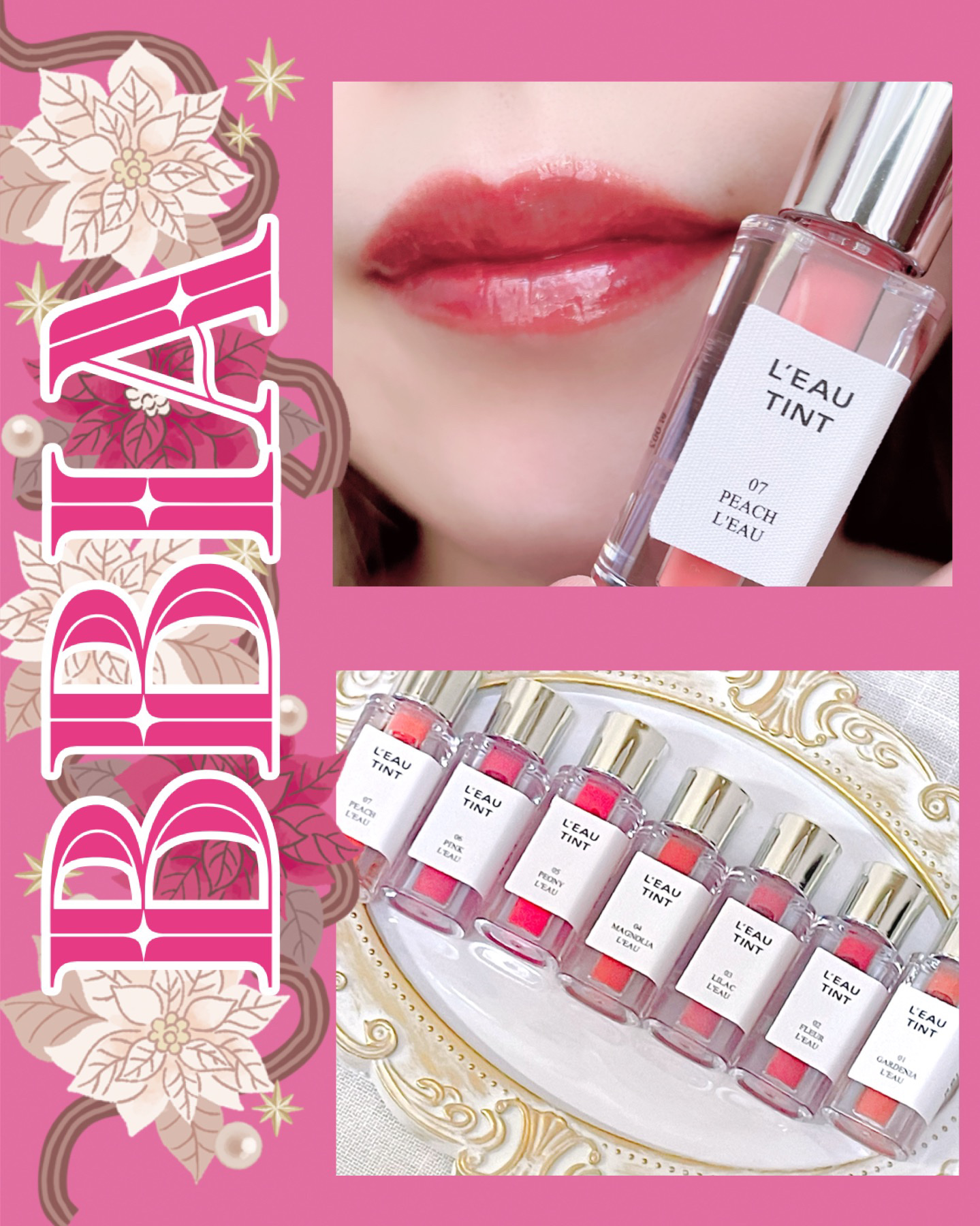 - - うるおいリップなのにしっかりカラーが定着し、時間が経っても塗りたてそのままのカラーを維持 *色が落ちにくいことから「飲み会リップ」としてSNSで話題に - 水のように軽くて快適なグロウティント、塗り重ねるほど鮮やかで透明に浮き上がる水彩画カラー - 香水瓶をイメージしたBBIA初のカスタムデザイン。パッケージはもちろん、カラーとテクスチャーに真心を込めて開発