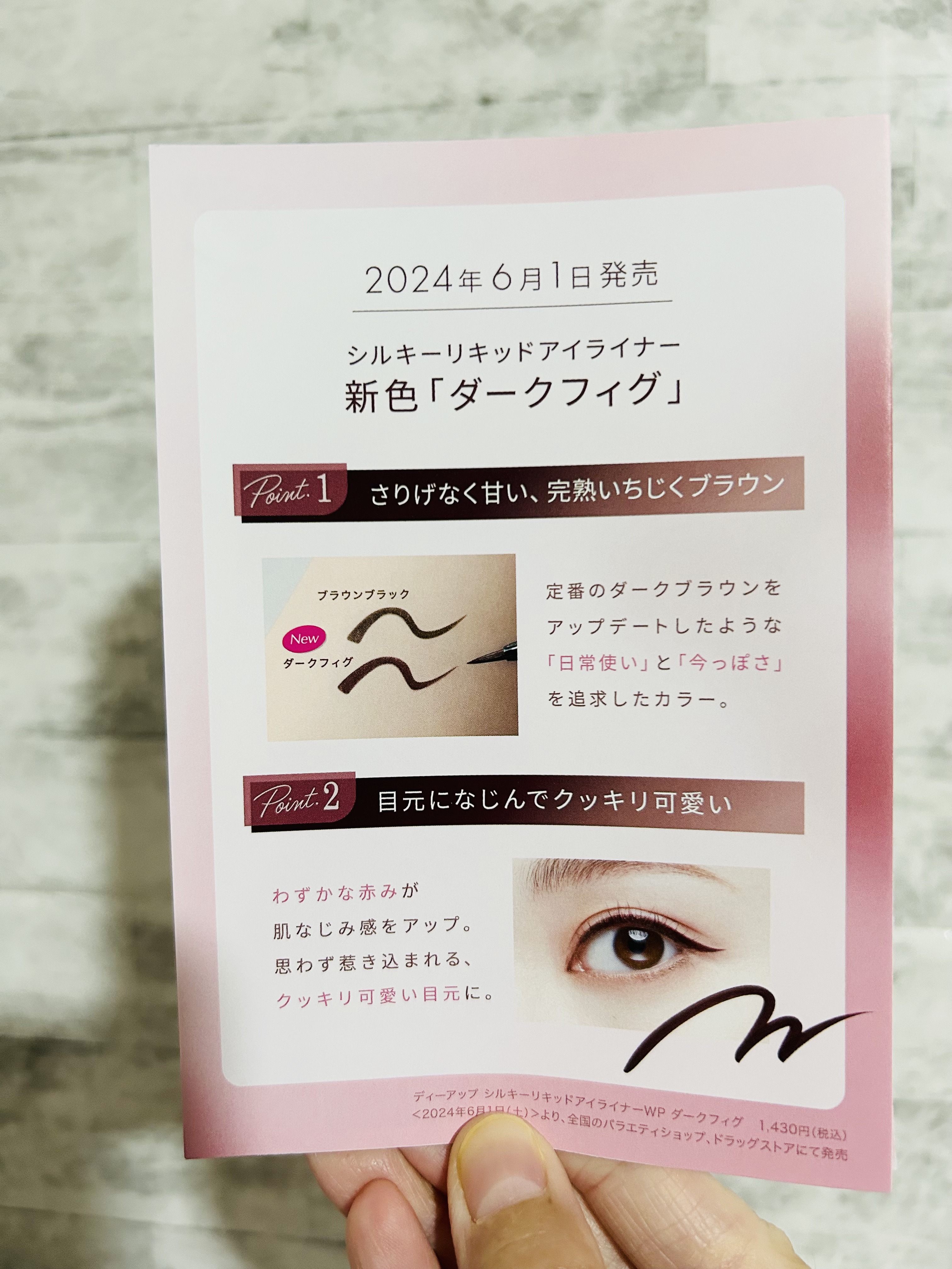 D-UPシルキーリキッドアイライナーWPダークフィグ定番のダークブラウンに温かな甘みをプラスした完熟いちじくブラウンカラー⸝⋆⸝⋆✓しなやかでコシのある極細0.1mmの筆先✓水・汗・皮脂に強いウォータープルーフ✓5種類の美容液成分(保湿成分)...