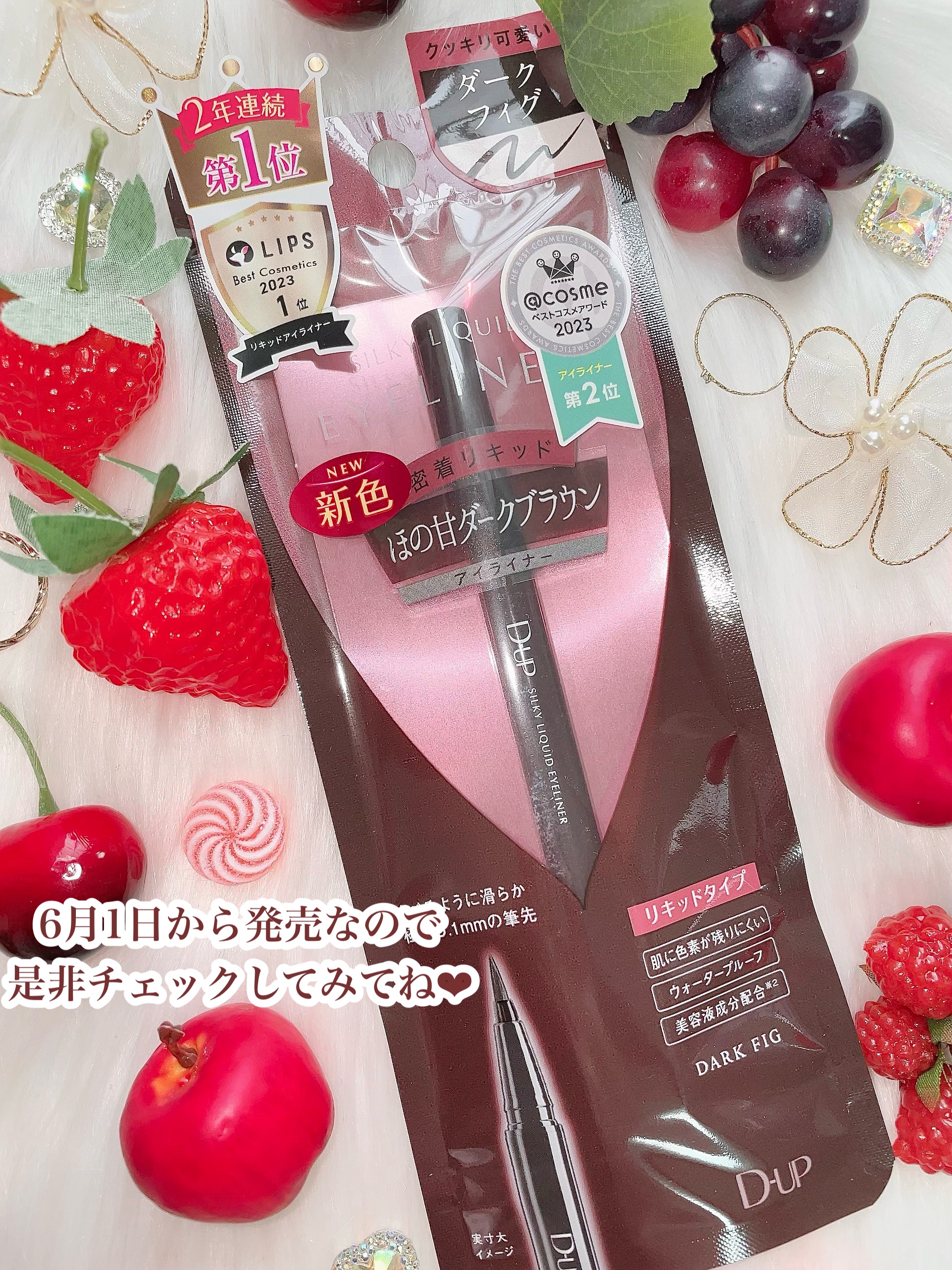 ディーアップから初のラメライナーが登場しました🐰 抜け感のあるダークブラウンにシルバー×青のラメが配合されたアイライナー 擦れやにじみ、水、汗にも強い 長時間キープ出来るあのアイライナーシリーズのライナー 普段使いしやすい🙈🪿 このさりげなさが目元をうるうる美しく見せてくれそう🙊