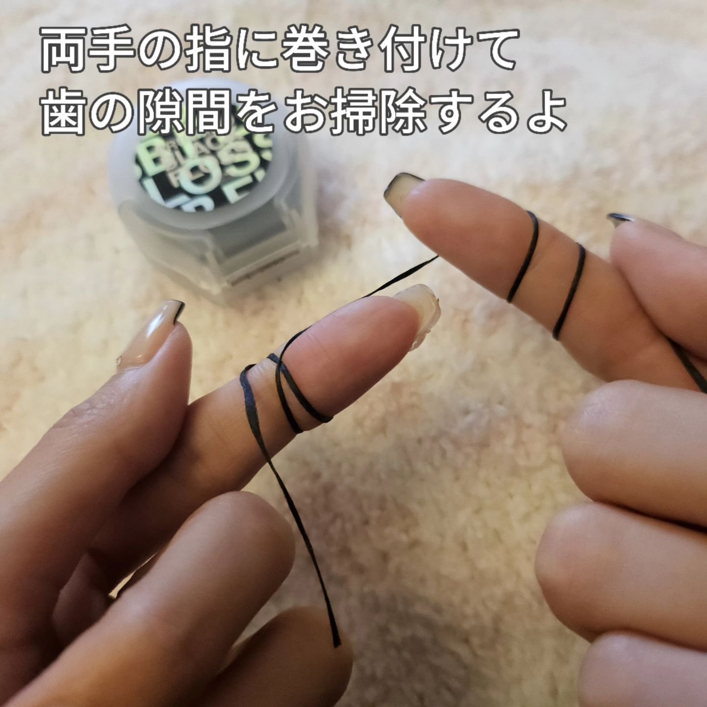 汚れが目視しやすい黒色フロス! 取れた汚れがよく見えるので気持ちよく、達成感がありモチベーションアップにも繋がります◎ フロス1本はなんと384本の繊維で作られているそう。これにより唾液の水分などで広がりやすく、汚れを根こそぎ絡め取ってくれるみたいです。 虫歯や歯周病、口臭の予防にぜひともおすすめ!毎日のオーラルケアに取り入れてみてください。