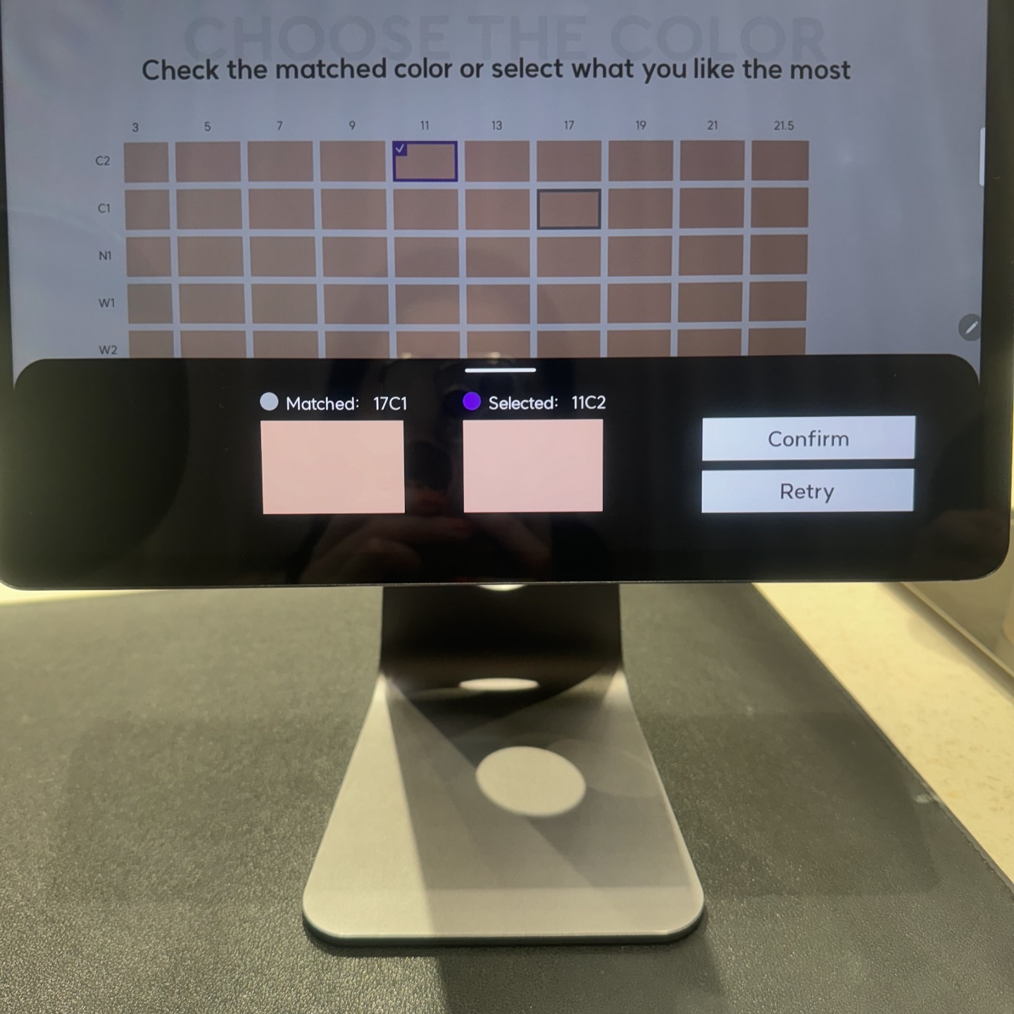 肌判定からファンデサンプル受け取りまでは無料、 気に入ったらリキッドかクッション どちらかを有料で作成できます! 飾りだと思ってたロボットが わたしのファンデを目の前で作ってくれたよ〜 予約すればスタッフの人(日本語NG)が、 予約なしだと判定機で肌色判定、 わたしは後者で友達とやったけど 光の当たり具合で判定結果が毎回違うので 予約してスタッフの人に見てもらうのがよさそう。