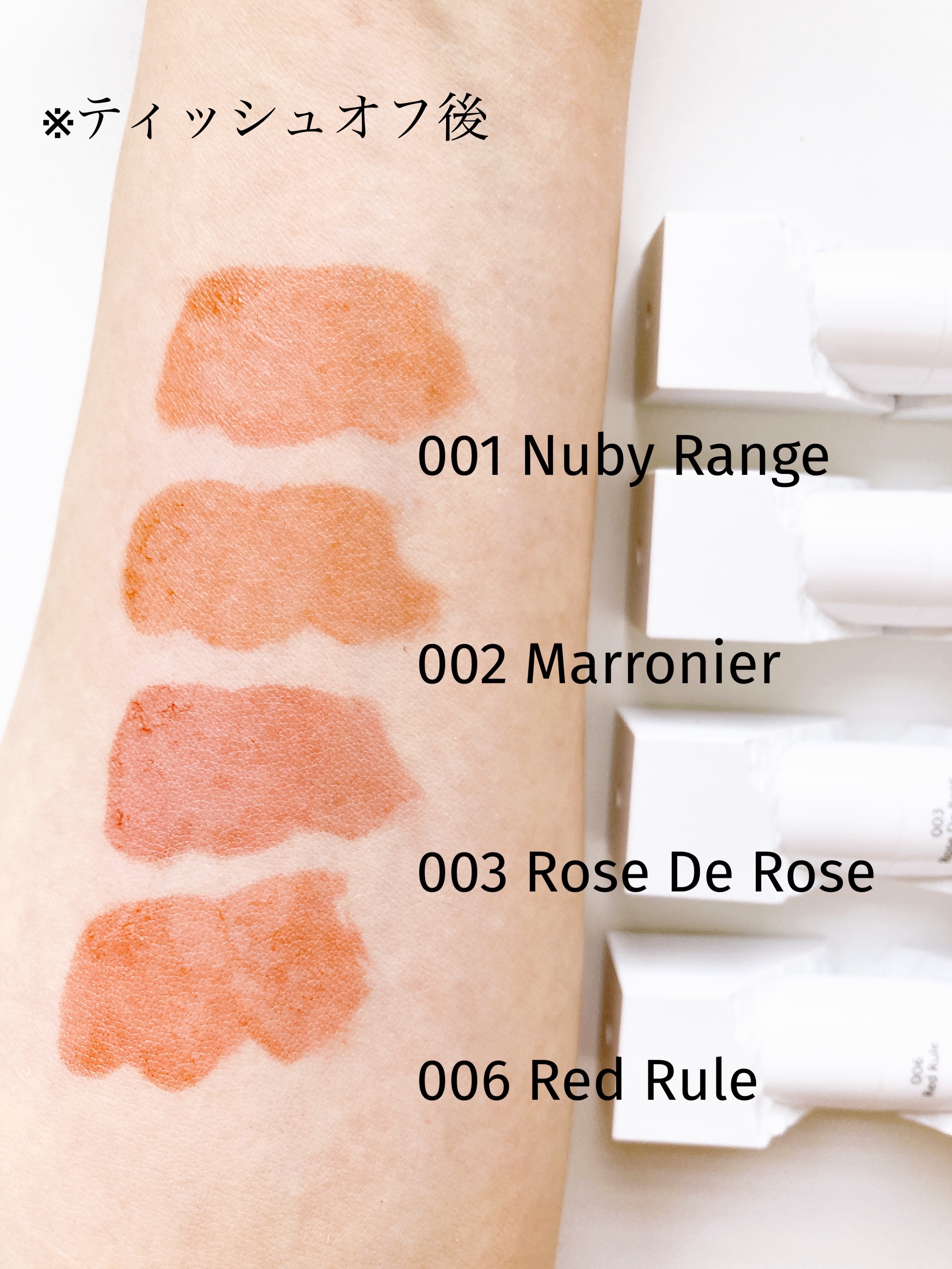 重ねるほど鮮やかに🫶発色そのまま透け感ティント🌸♡♡ArteSinsaのビルダブルデューイフィットティントをパーソナルカラー別に4色スウォッチ☺️ArteSinsaアルテシンサビルダブルデューイフィットティント001NudyRange/002...