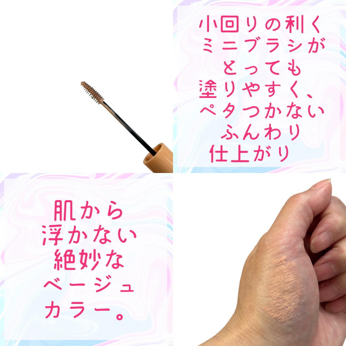 - <01 ピンクベージュ> 水、エタノール、グリセリン、アクリレーツコポリマー、ステアリン酸亜鉛、ペンチレングリコール、セルロースガム、ジグリセリン、フェノキシエタノール、プルラン、ベントナイト、三リン酸5Na、シメチコン、ステアリン酸ソルビタン、ステアリン酸グリセリル、オレイン酸ポリグリセリル-10、酸化チタン、タルク、シリカ、酸化鉄、アルミナ <02 ホワイトベージュ> 水、エタノール、グリセリン、アクリレーツコポリマー、ステアリン酸亜鉛、ペンチレングリコール、セルロースガム、ジグリセリン、フェノキシエタノール、プルラン、ベントナイト、三リン酸5Na、シメチコン、ステアリン酸ソルビタン、ステアリン酸グリセリル、オレイン酸ポリグリセリル-10、酸化チタン、タルク、シリカ、酸化鉄、アルミナ