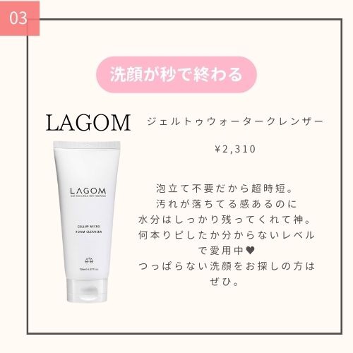 LAGOM ラゴム ジェルトゥウォーター クレンザー(朝用洗顔) | 2,310円 |