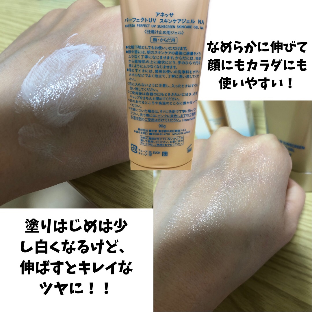 🎀アネッサ パーフェクトUV スキンケアジェル NA顔全体に塗ってみた🙋♀️🩷ྀི日焼け止めって汗かいた時とか目に入ってきて痛くなってたけどこれならなかった!!よれにくくて使いやすい!...