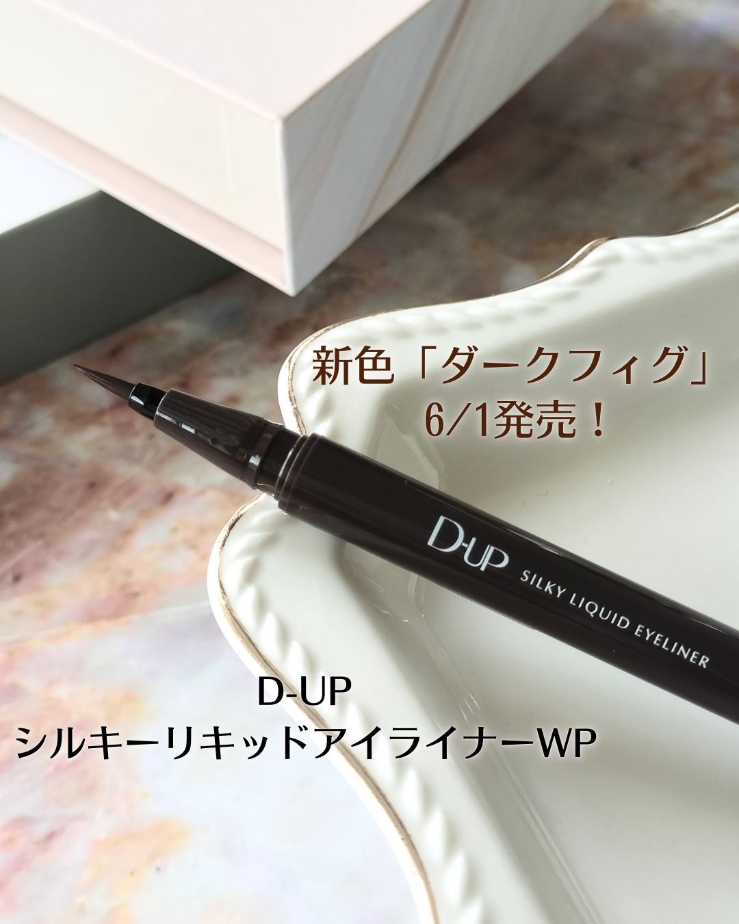 D-UPシルキーリキッドアイライナーWPダークフィグ定番のダークブラウンに温かな甘みをプラスした完熟いちじくブラウンカラー⸝⋆⸝⋆✓しなやかでコシのある極細0.1mmの筆先✓水・汗・皮脂に強いウォータープルーフ✓5種類の美容液成分(保湿成分)...