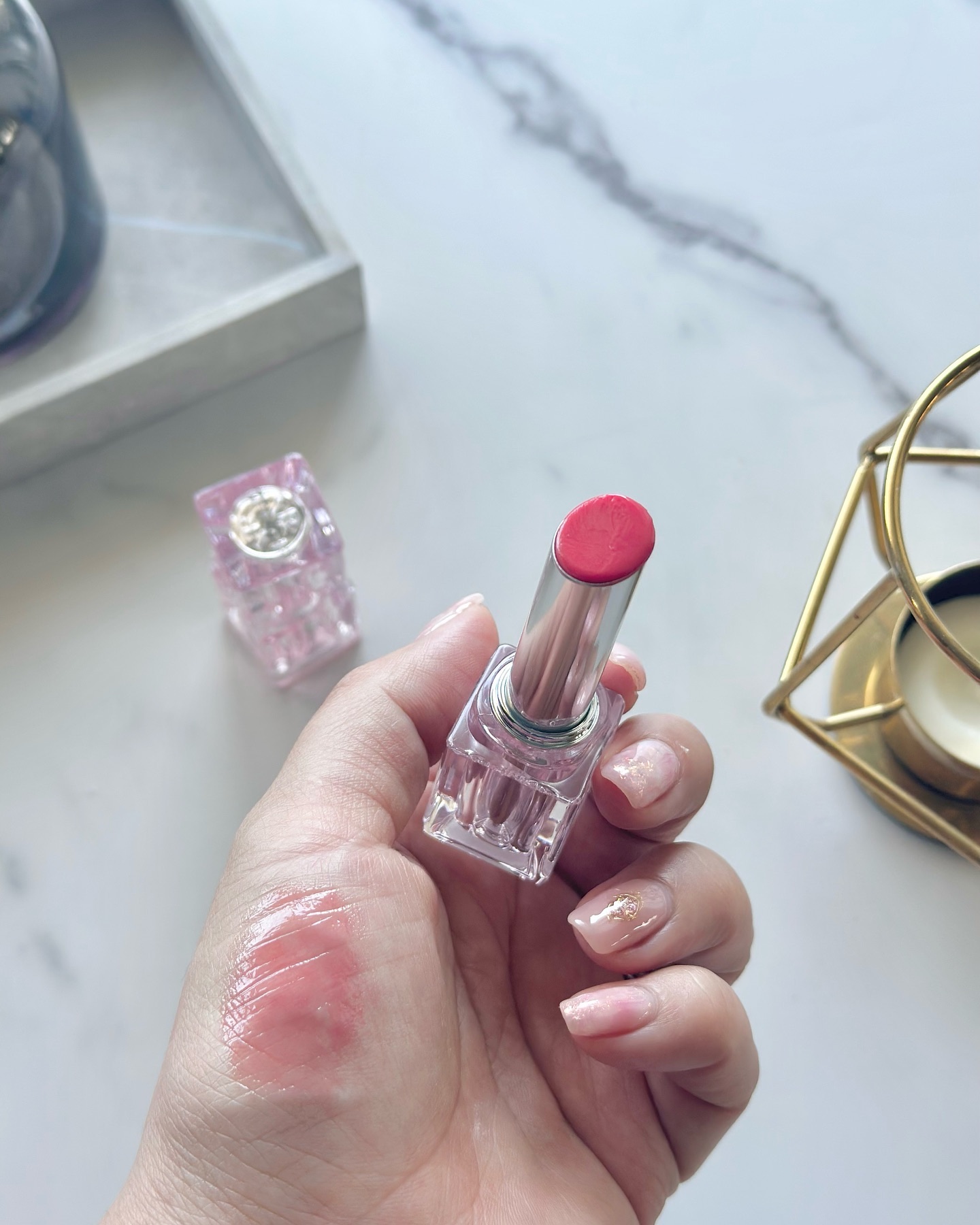 ティントは、透明感のある発色で、カラーとみずみずしい質感が持続してくれるティント!塗るときにムラになりにくいのも良かった💡 バームは、ナチュラルな発色で、ツヤっとした光沢感がきれい✨ 保湿感がほしいときに使うのがおすすめ!