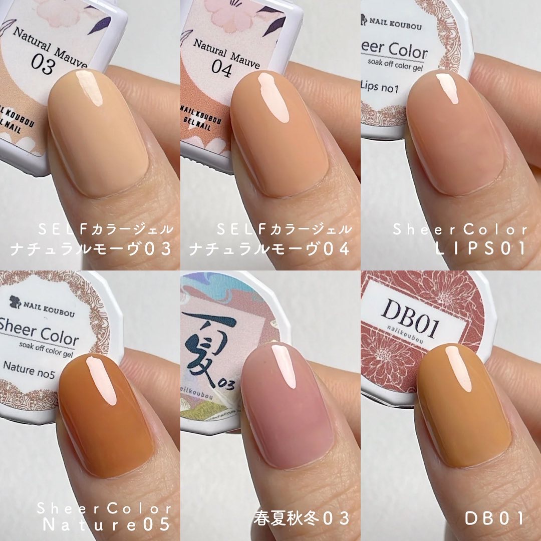 ピンクとオレンジの中間のような 「甘すぎない桃色」の事! 透け感のないマットカラーと 透け感のあるほんのりのるカラーがあり どんなデザインも出来そう✨ 【ボトル】 ❋self ナチュラルモーヴ ┣03 ┗04