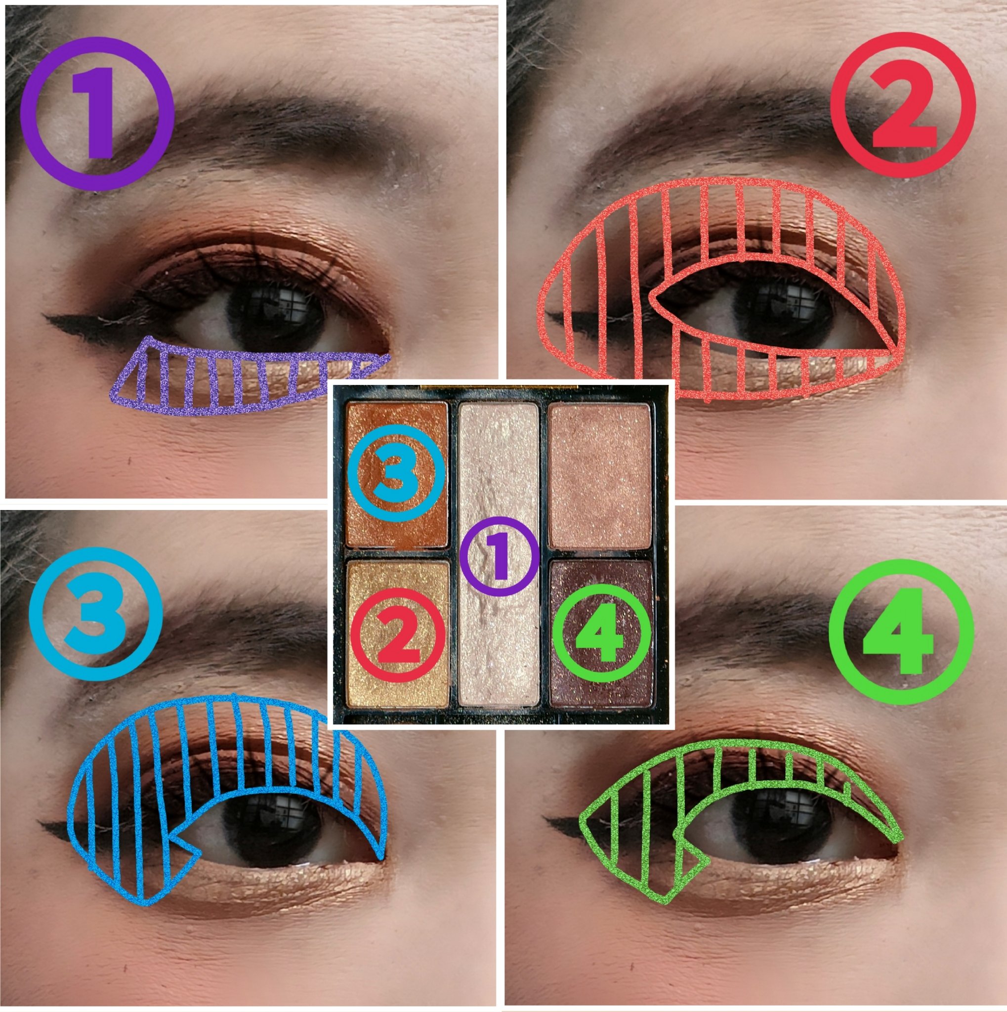 アイシャドウパレットは、URGLAM UR GLAMBLOOMING EYE COLOR PALETTE 02を、使用しました。 マスカラは、MAYBELLINE NEW YORK コロッサルボリュームエクスプレスを、まつ毛全体にまんべんなく塗ります。 リップは、wet 'n' wild MegaLast Lip Colorを、唇全体にまんべんなく塗ります。
