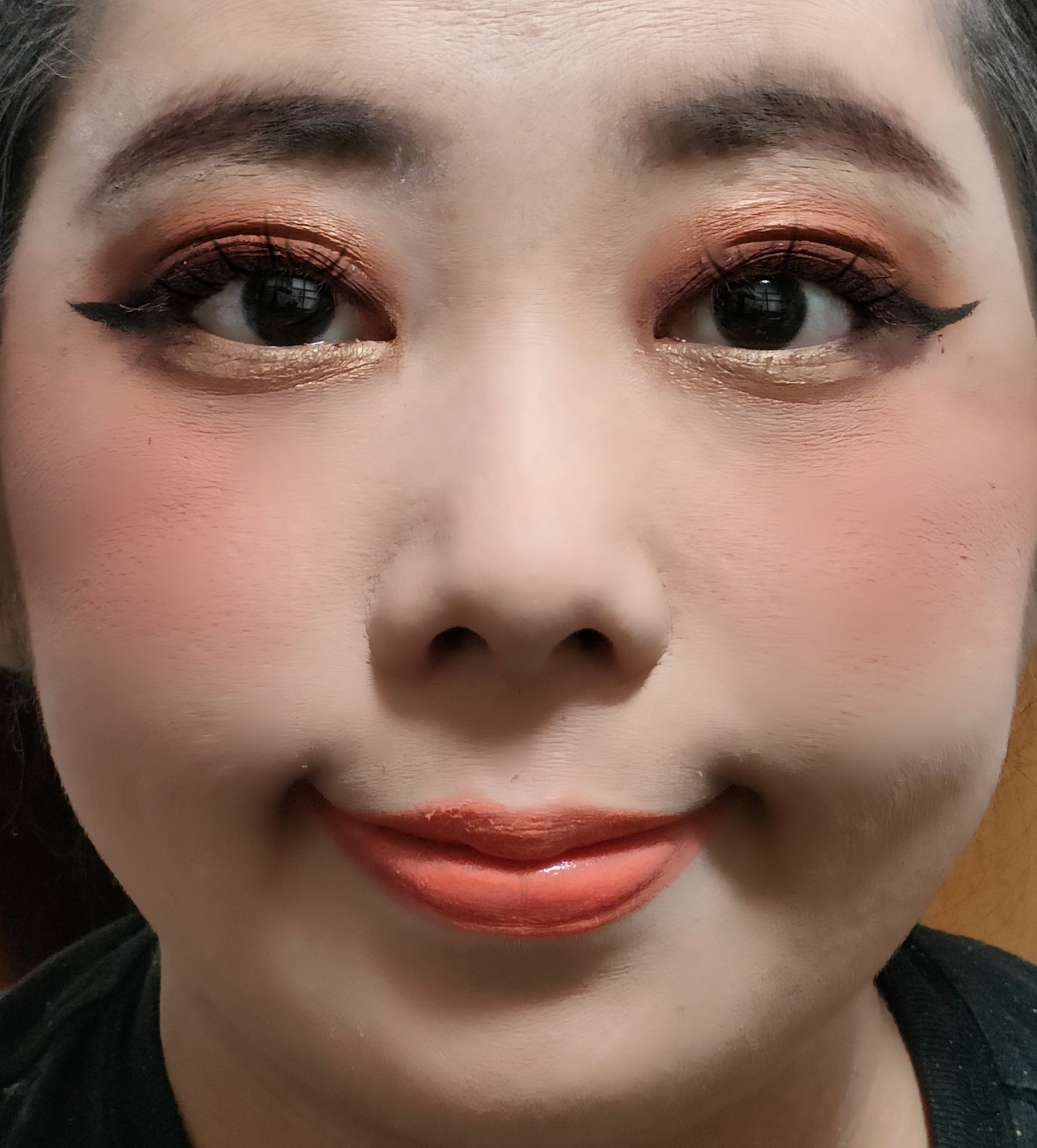 アリィー ニュアンスチェンジUV ジェル RSを、顔全体にまんべんなく塗ります。 RMK RMK ジェルクリーミィファンデーション 103を、顔全体にまんべんなく塗ります。 ジョンソンベビー ジョンソン ベビーパウダーを、顔全体にまんべんなく軽くはたきます。 THE BODY SHOP bronze shade warm glowを、両頬に塗ります。 KATE リフレクトミラーアイズ BR-1の締め色を、眉毛全体にまんべんなく塗ります。 URGLAM UR GLAMBLOOMING EYE COLOR PALETTE 01を、使用しました。 ちふれ リキッド アイライナー 筆ペンタイプ BK30 ブラックを、塗ります。 CEZANNE エアリーカールマスカラを、まつ毛全体にまんべんなく塗ります。 MAYBELLINE NEW YORK コロッサルボリュームエクスプレスを、まつ毛全体にまんべんなく塗ります。 MAYBELLINE NEW YORK SPステイ マットインク 135を、唇全体にまんべんなく塗ります。