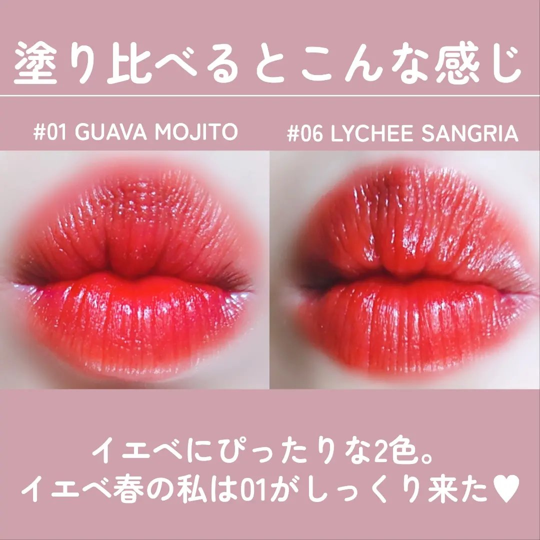 ・lilybyredジューシーライアーウォーターティント01GUAVAMOJITO500円で買えたジューシーライアーウォーターティント。訳あり商品とのことだったけど、箱破損もなくて何が訳ありかわからないレベル✨リップとかたくさん集めたくなるか...