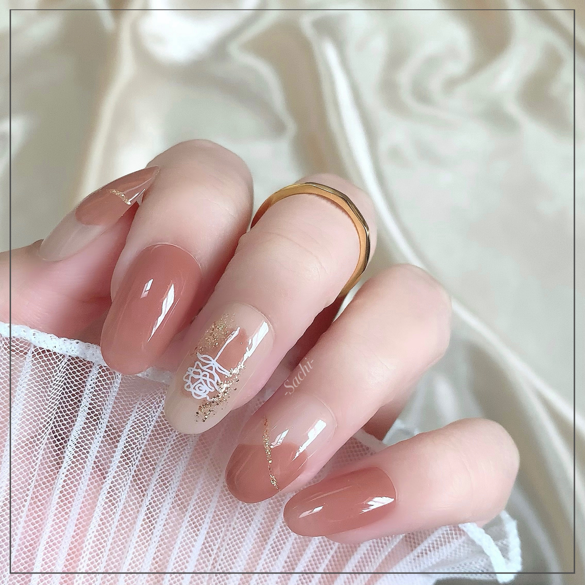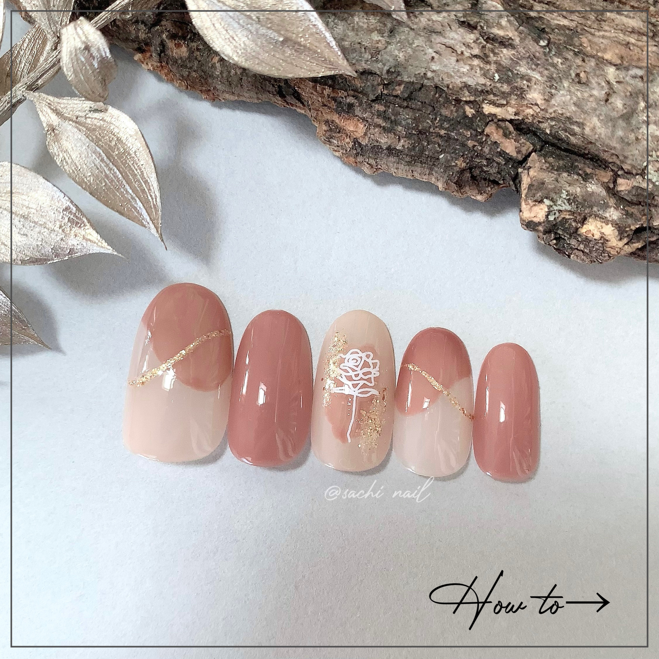 ワンカラーでも指ごとに色を変えるだけでオシャレに見えます💕 画像のようにゴールドラインとストーンを少し足すだけで華やかさがアップ🥰 何度かご紹介したことのあるスポンジで作るグラデーションです✨ スポンジを使うことで境目が綺麗に馴染んでくれます💕 アルミホイルの上でブラウンとトップコートを1:1くらいで混ぜたものを、トップコートのハケに取って3箇所に塗るだけ👌 事前に混ぜたものを塗ることで、爪の上でぼかすより簡単に出来ます💕 ベースカラーが乾く前に点置きしてぼかすことで綺麗にぼかせます✨ スピードが大事なので、使うポリッシュのキャップは全て開けておきましょう😊 天然石のラインはガタガタの方がより天然石っぽく見えるので、ラインを描くのが苦手な方でも大丈夫🙆♀️ 難しそうに見えて、やってみると意外と簡単に出来ます♡