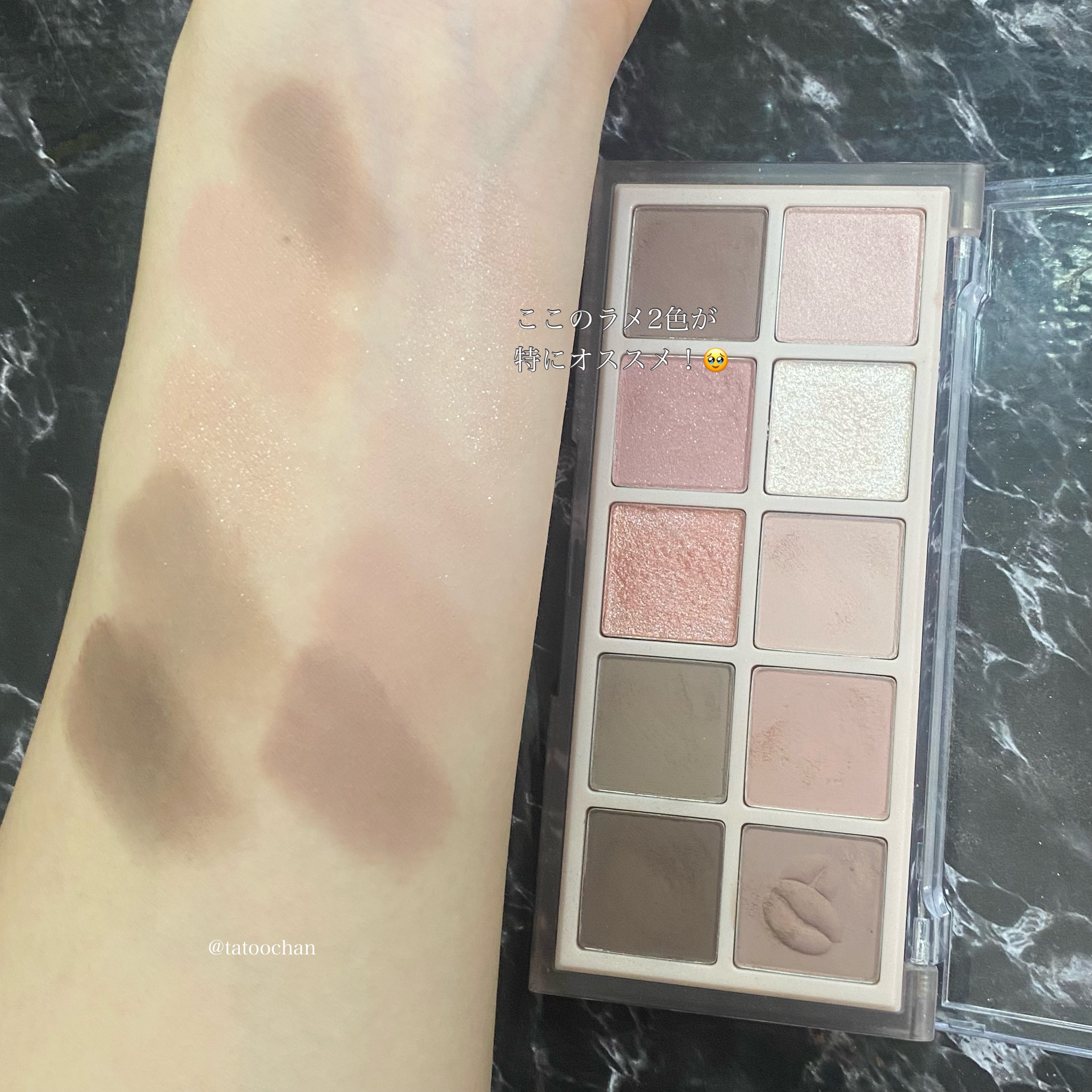 - 10color & 5texteresで、多機能に使用できるアイシャドウパレットです。 陰影ベースからパール感のあるポイントメイクまで、滑らかな塗り心地と高い密着力で美しいグラデーションを作ることができます。 しっとりとした目元を演出しつつ煌めきも与え自分だけのmoodを演出してくれます。