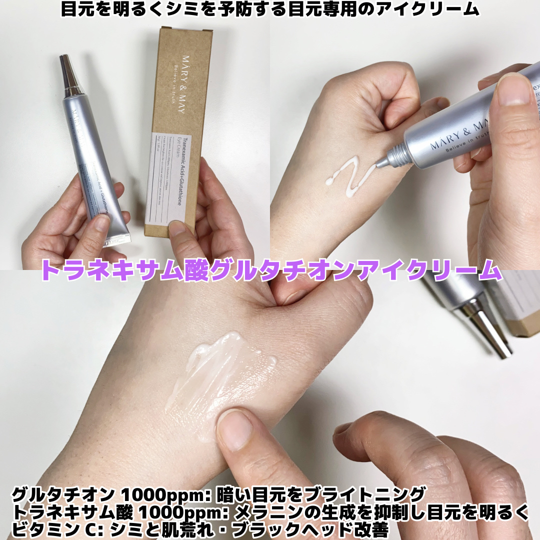 目元の肌トーン、明るさ、シミ、そばかすなどを集中ブライトニングケア✨ やわらかくなめらかなテクスチャー のびがよくベタつき感はなし ピタッと密着感があり、使用感◎ 目元だけでなく、くすみやシミが気になるところにも◎