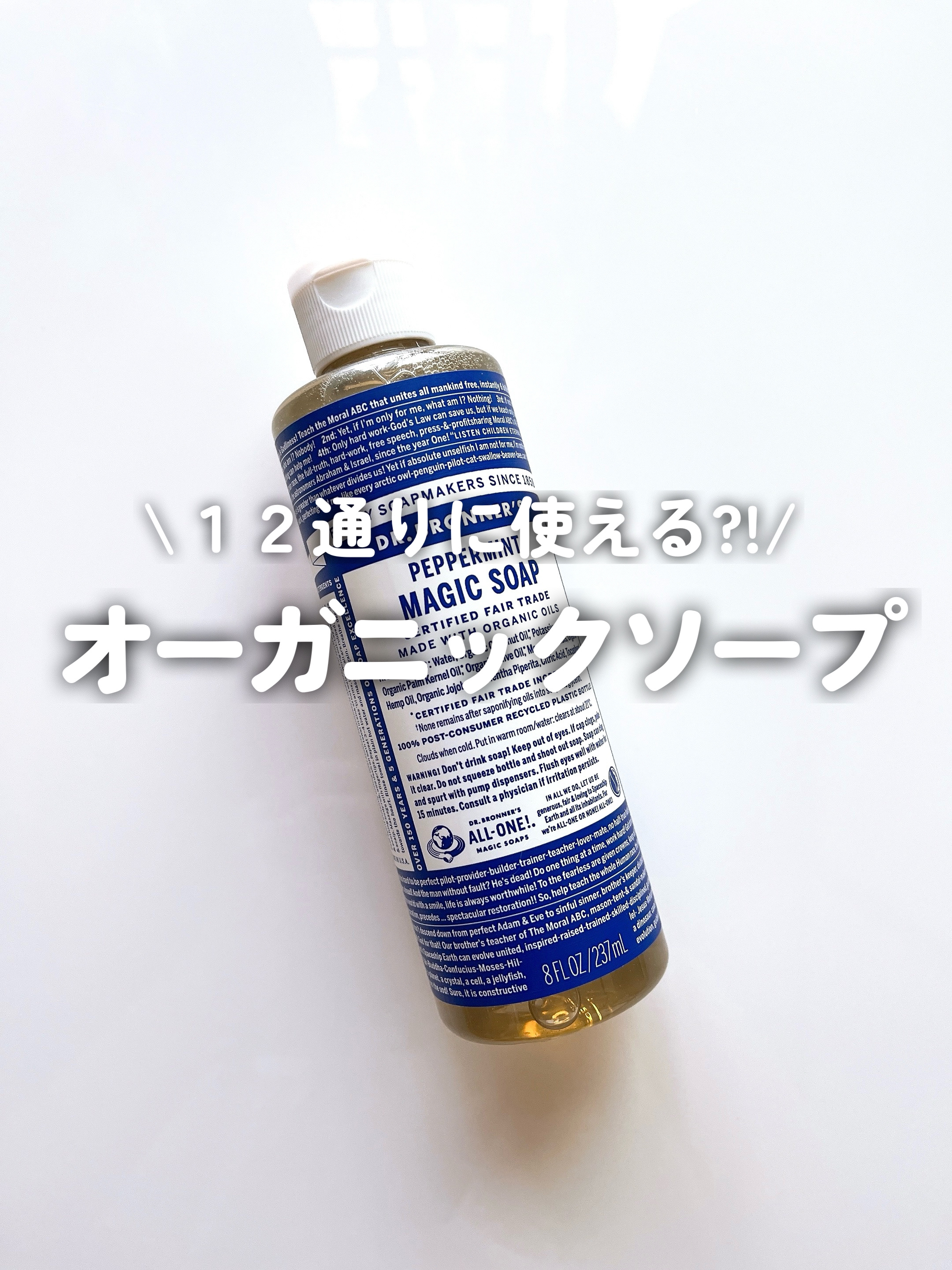 𓆸ひとつで12通りもの使い方ができる天然由来成分100%の多用途リキッドソープ。Dr.Bronner’s(ドクターブロナー)「マジックソープ」お家ではもちろん、旅行やアウトドアでも大活躍。夏はペパーミントがおすすめ!インド*¹など...