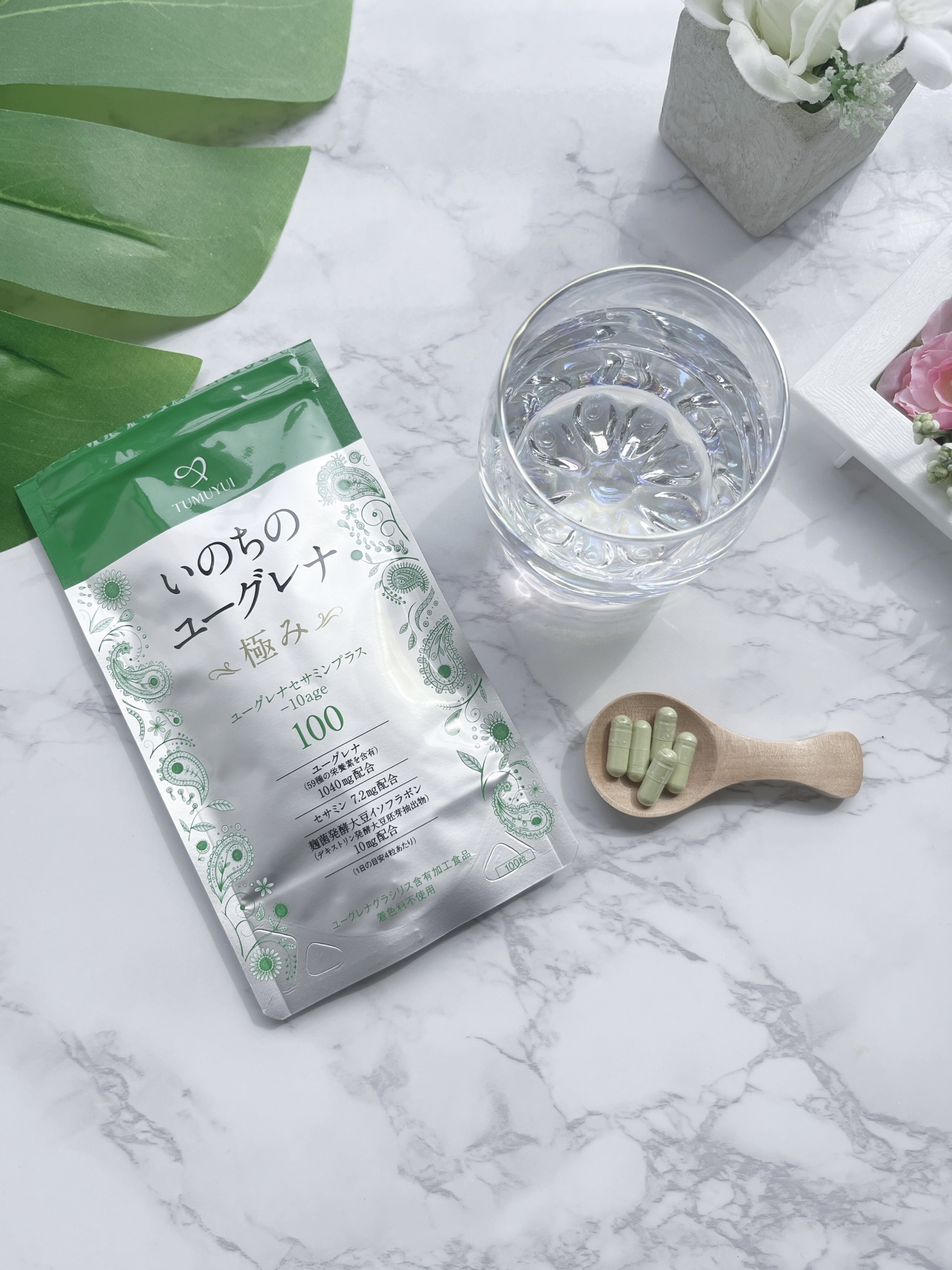ユーグレナ(ミドリムシ)は豊富な栄養素を持つ食品として、とても注目されているスーパーフード。SNSでもよく話題になっているようです。 なかでも【 いのちのユーグレナ~極み~】は、業界トップクラスのユーグレナ配合量とのこと。 いのちのユーグレナは、1日4粒のカプセルで1040mg摂ることができるのだそう。効率よく摂取できるところが嬉しい。