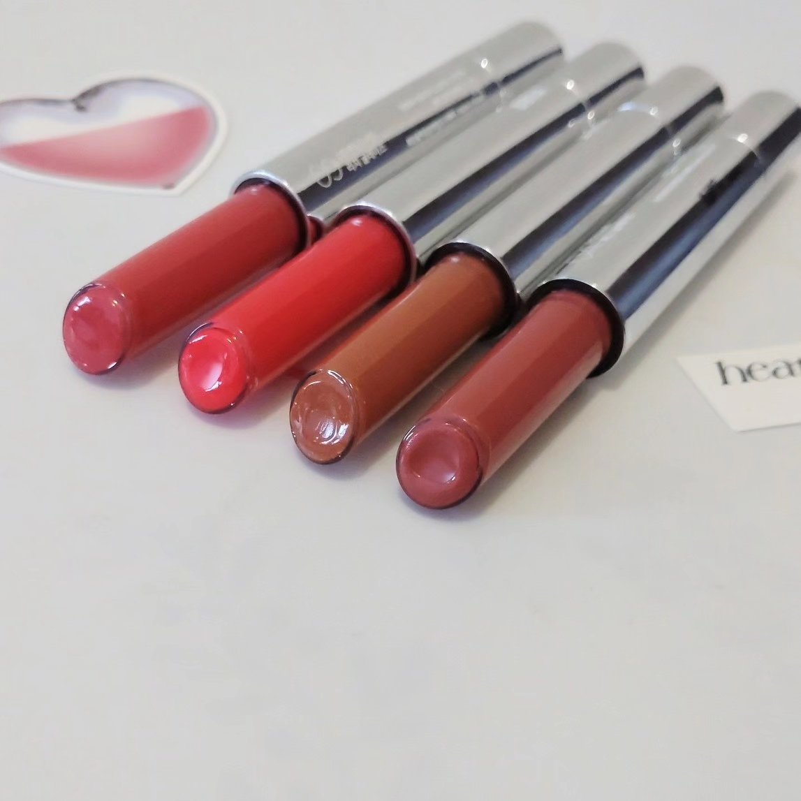 ★07sunny warmthゴールド・レッドパールが煌めくサニーオレンジShine Type ★21little vacationやわらかな赤味がかったタンジェリンオレンジGlow Type ★07 は細かいパールがキラキラかわいい♡ツヤツヤ輝いています♪ ★21 は7よりピンクっぽい肌なじみカラー♡オフィスメイクにオススメ♪ どちらも、するする~っと、なめらかに塗れて、ツヤリップに♡ 大好きな塗り心地&ツヤ感!