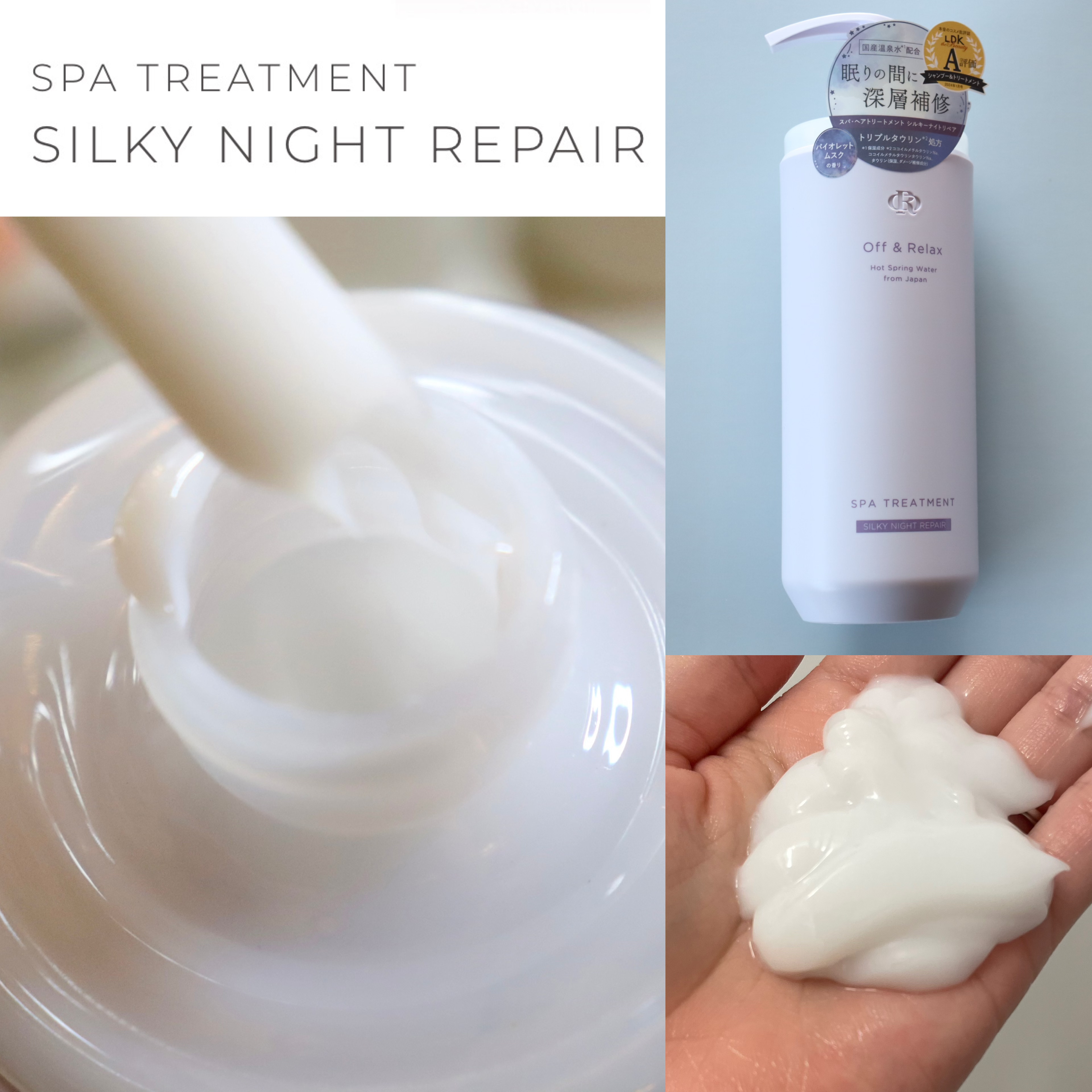 いつもご覧いただきありがとうございます♡髪と頭皮にスパの恵みでうるおいもたらす…♡Off&Relax・ORスパ・シャンプーシルキーナイトリペア460ml・ORスパ・ヘアトリートメントシルキーナイトリペア460ml・乾燥で髪がパサつく・枕などの...