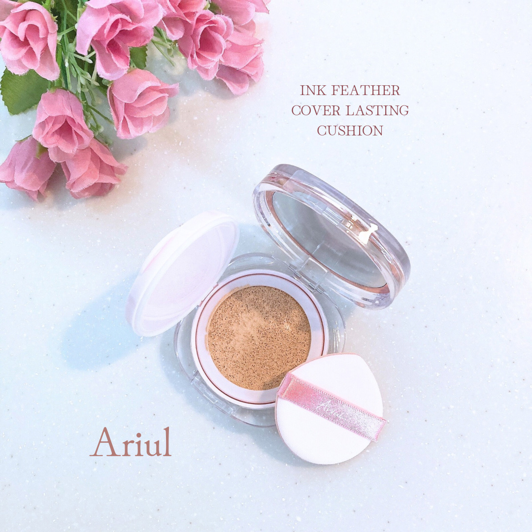 AriulインクフェザーカバーラスティングクッションSPF50・PA++++Qoo10購入品✨微細なシリカパウダーと、光を反射するパールパウダーが毛穴とデコボコをカバーしてシリコンゲル成分が毛穴を埋めてツヤ光肌に導いてくれるクッション。肌の色...