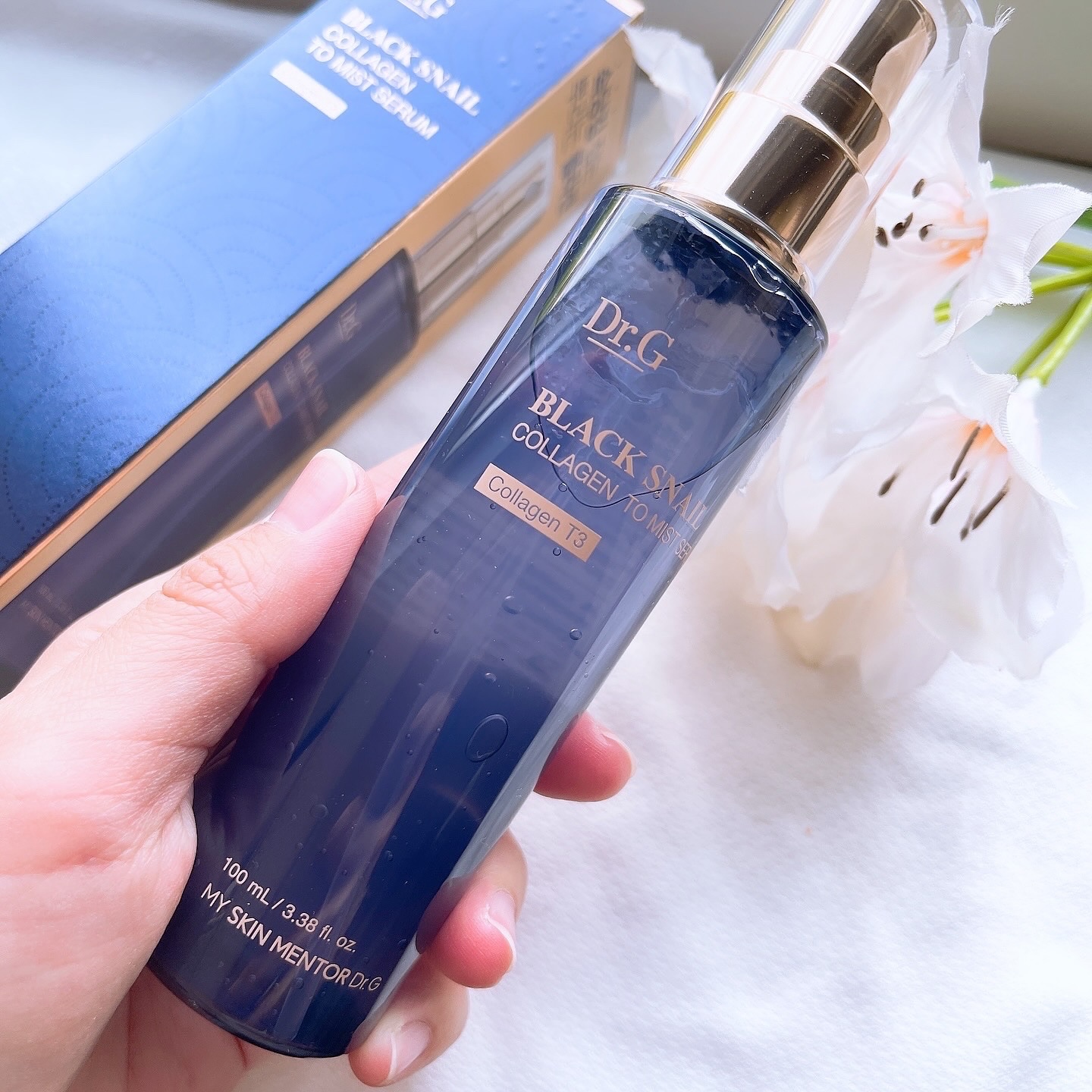 ブラックスネイルが配合されているので、肌にしっかり栄養を与え、T3コラーゲンという、人が持つコラーゲンに極めて近いドクタージーの独自成分で肌にハリや弾力を与え、コラーゲンの生成を促進するドクタージーの独自成分アクティブムチンが含まれた、とても贅沢なミストセラムです。 霧のような細かいミストでフワッと顔に吹き掛けれます! ミストオイルではないのでベタつかず、肌馴染みよい。 ブラックスネイルコラーゲントゥーミストセラムはミストは日本での発売後、1週間で1,000個が売り切れになるほど、注目されているミストセラムなんだって!