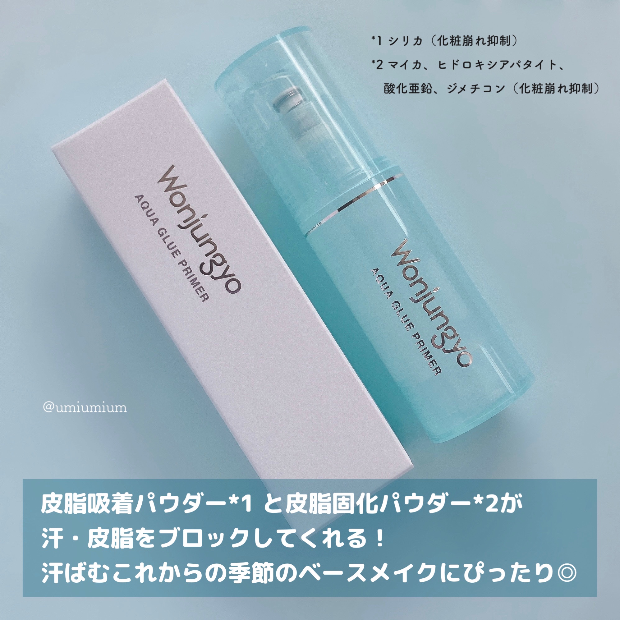 ウォンジョンヨ アクアグルー プライマーお肌にうるおいを与えながら1日中メイクをしっかりキープ。新感覚メイクキーププライマー◡̈UVカット効果、毛穴補正効果やトーンアップ効果などはありません。ジェル状のプライマーでペタペタする使用感。伸ばして...