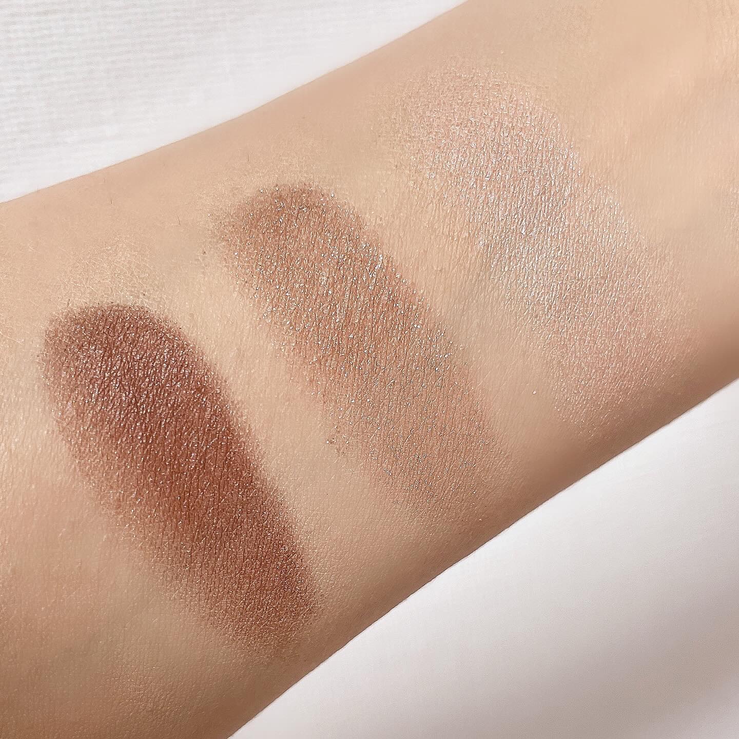 M110は優しいくすみピンクですっごい瞼になじみます。 062はくすみピンクブラウンで自然と彫りが深く見える目元に。 全体的に柔らかい発色で、急いでたり適当に塗ってもグラデーションが出来て、失敗しずらいと思います👌