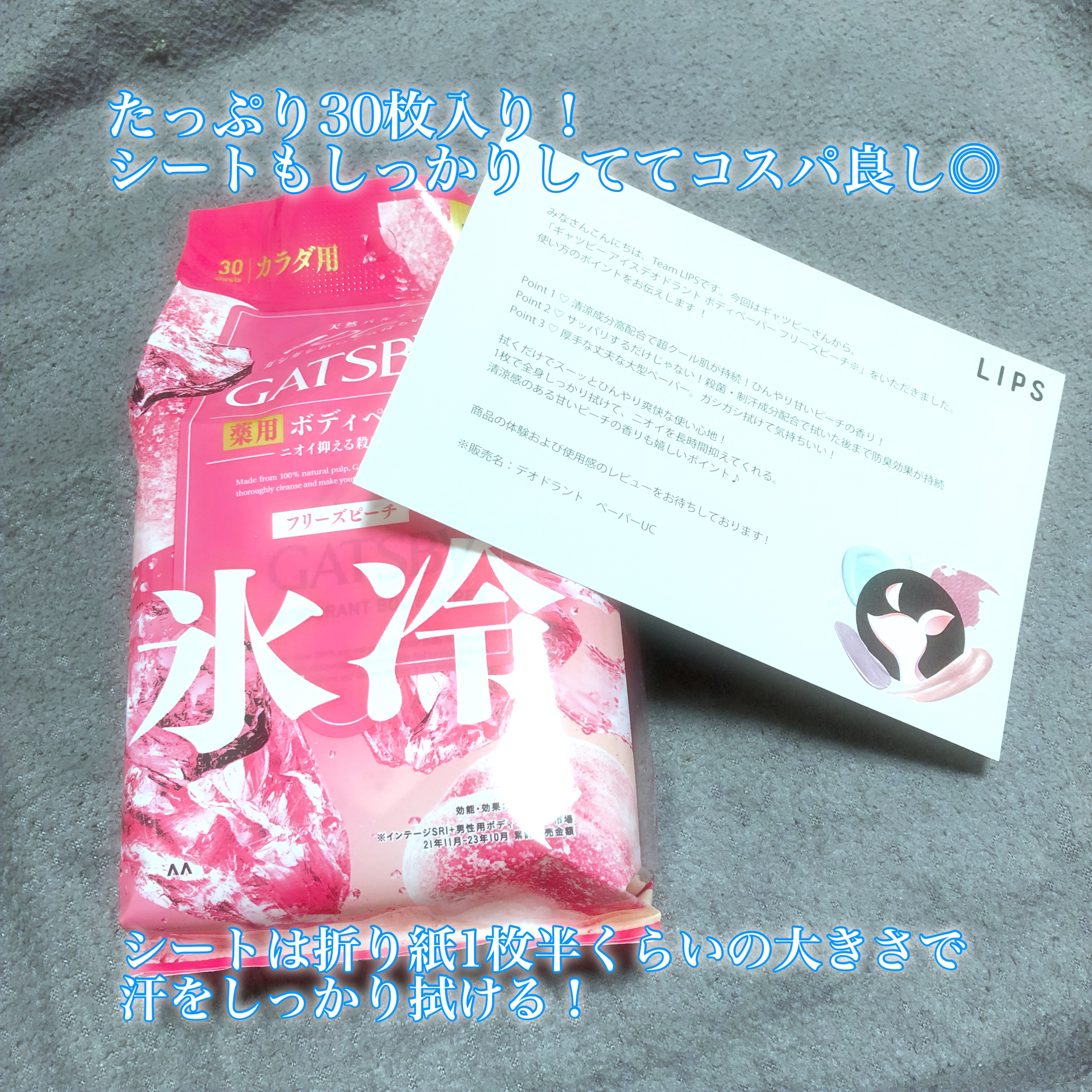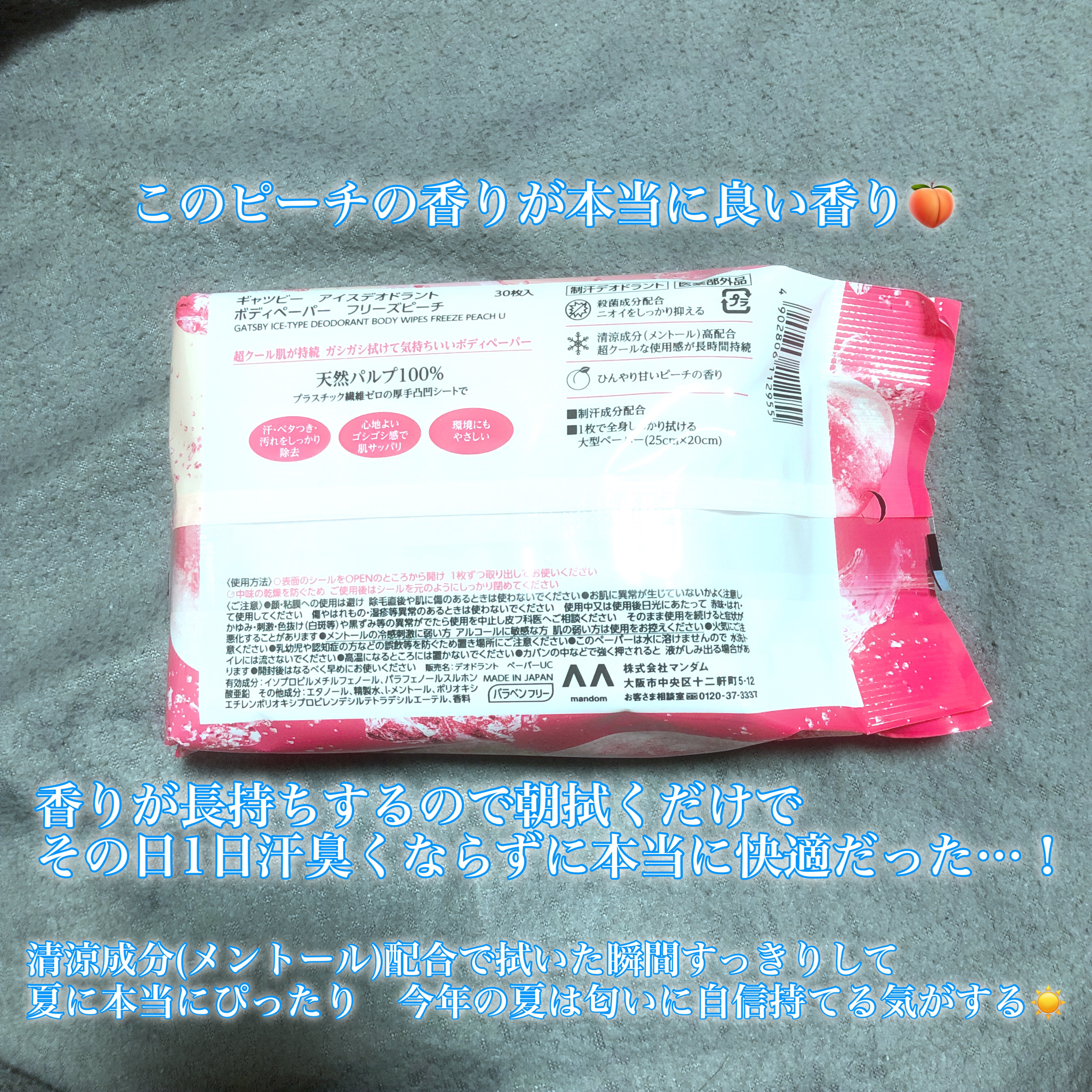| ボディシートランキング第5位 | かなりヒンヤリとしています😊甘い香りがついているわけではないので、男女問わず使えるのはいいなぁと思います✨ | 詳細を見る | |