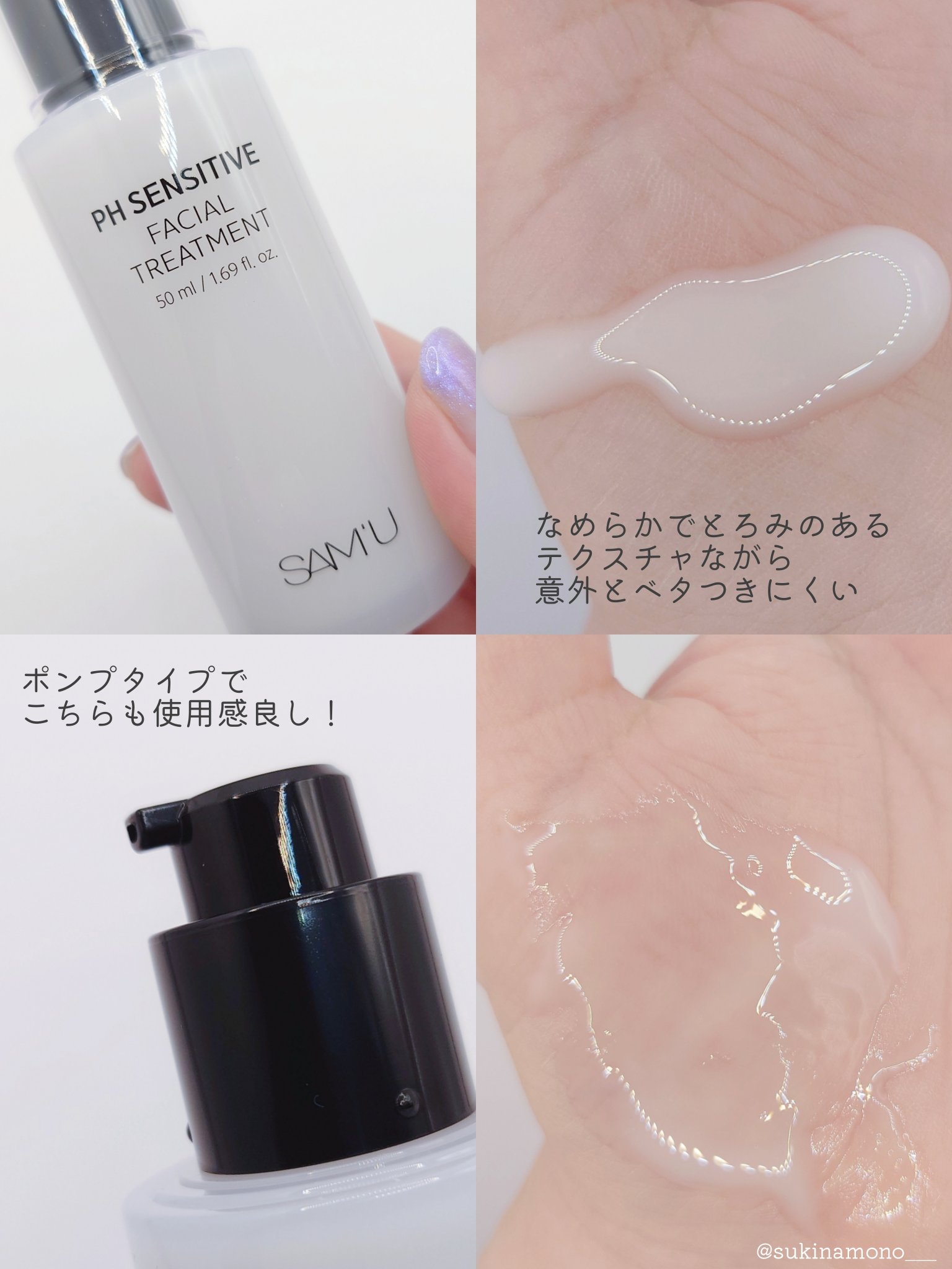 SAM'UサミュPHセンシティブフェイシャルトリートメント🤍🌸🤍🌸🤍🌸🤍🌸🤍🌸🤍🌸これ、美容液は美容液でも!!なんと仕上げ用美容液なんです!!(最初美容液かと思って順番間違えて使ってましたw)サミュPHセンシティブクリームを使った後に、是非一...