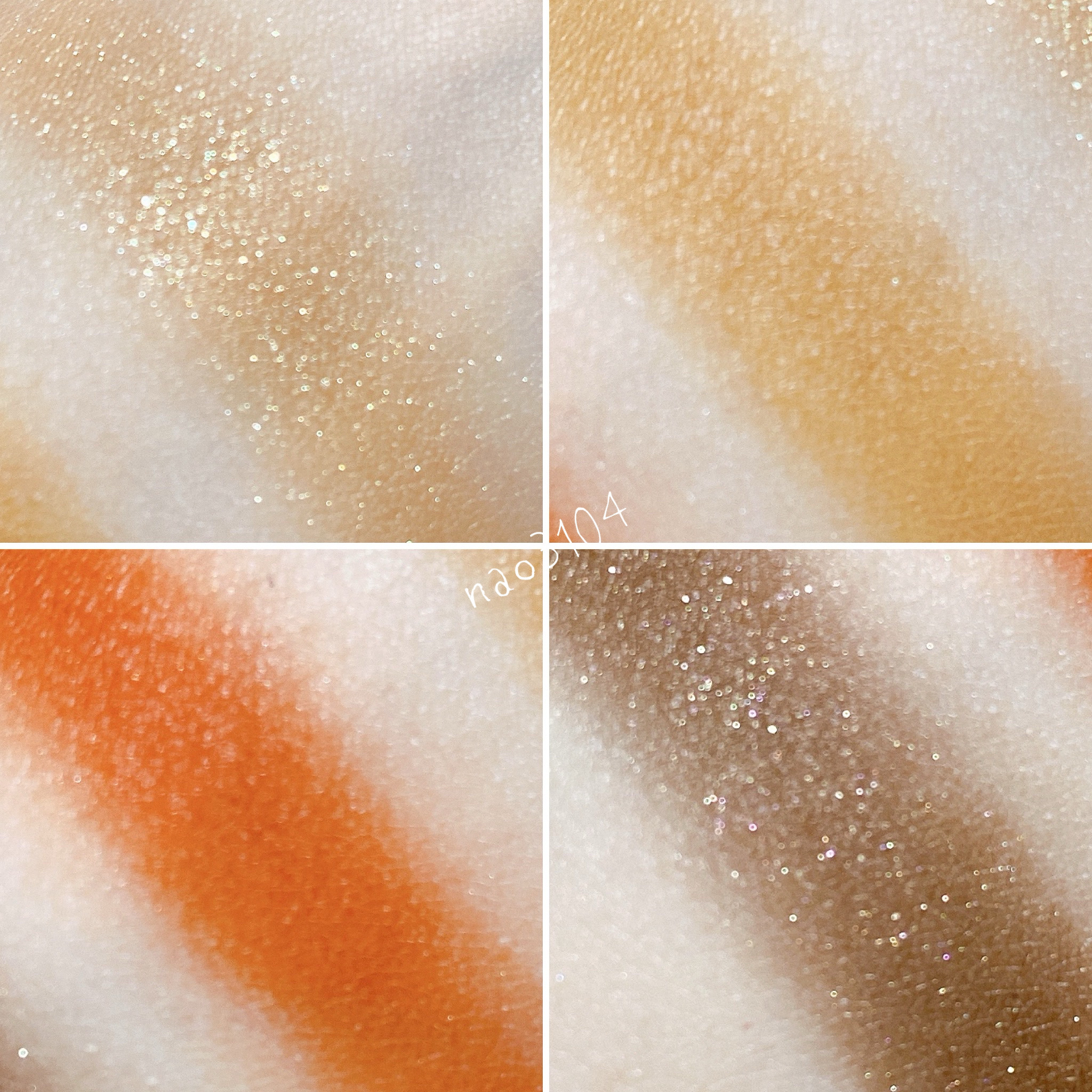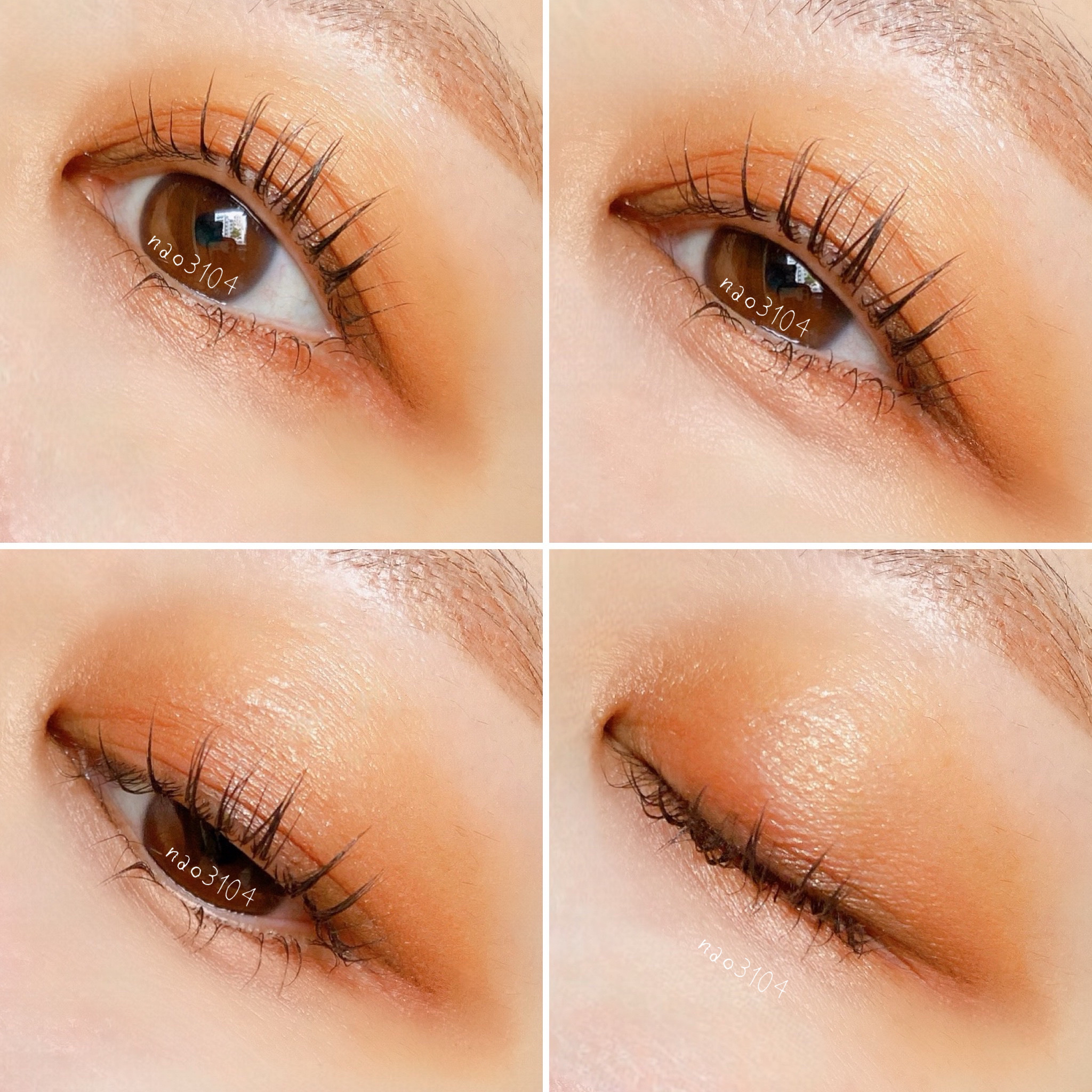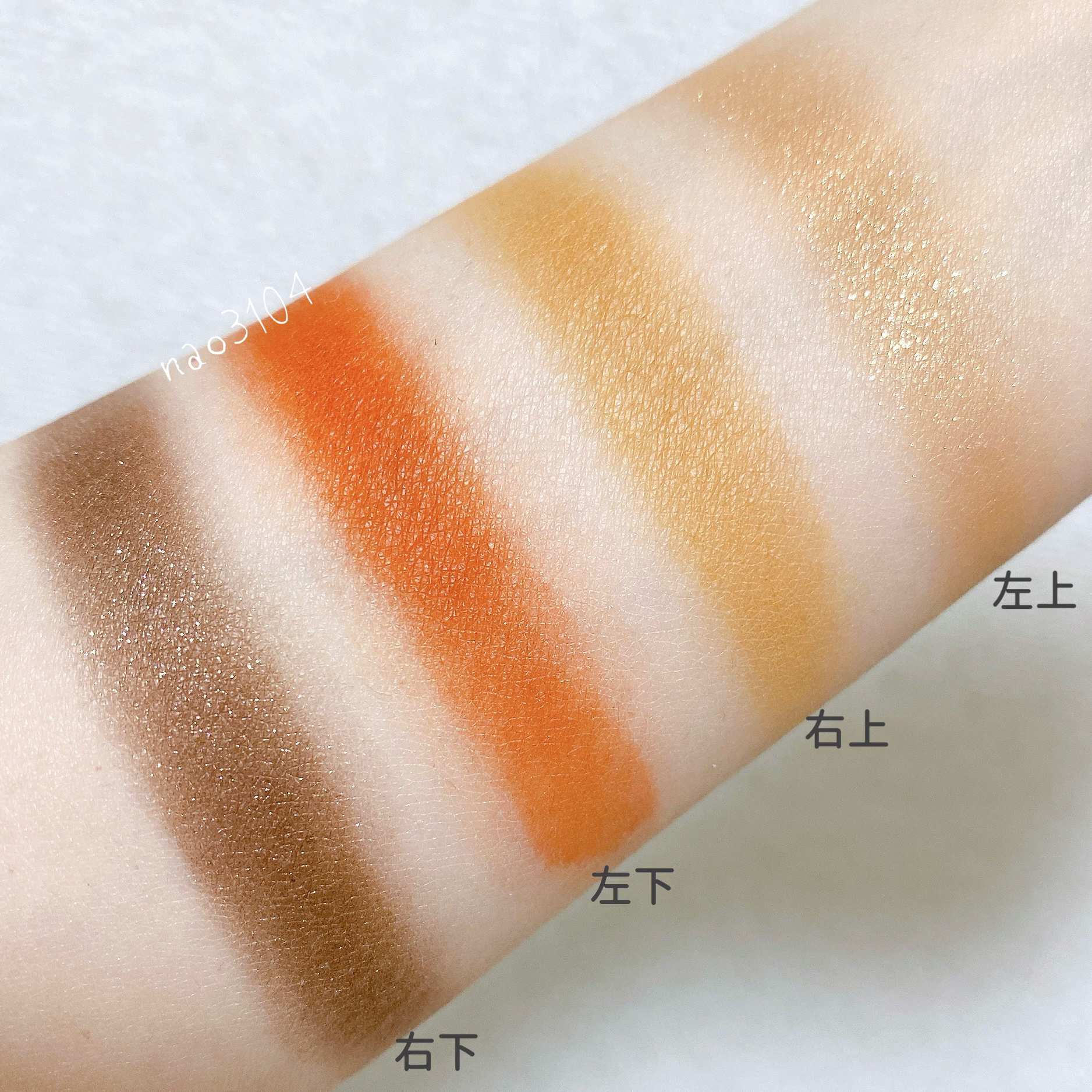 SUQQUシグニチャーカラーアイズ139夏焦-NATSUKOGASHI限定色沼ってます。夏焦大好き。右上のマスタード色を全体的に眉下までガッツリ塗って奥二重幅に左下オレンジを。右下を締め色に目尻上下に塗ってから大好きな左上のグリーンラメを真ん...