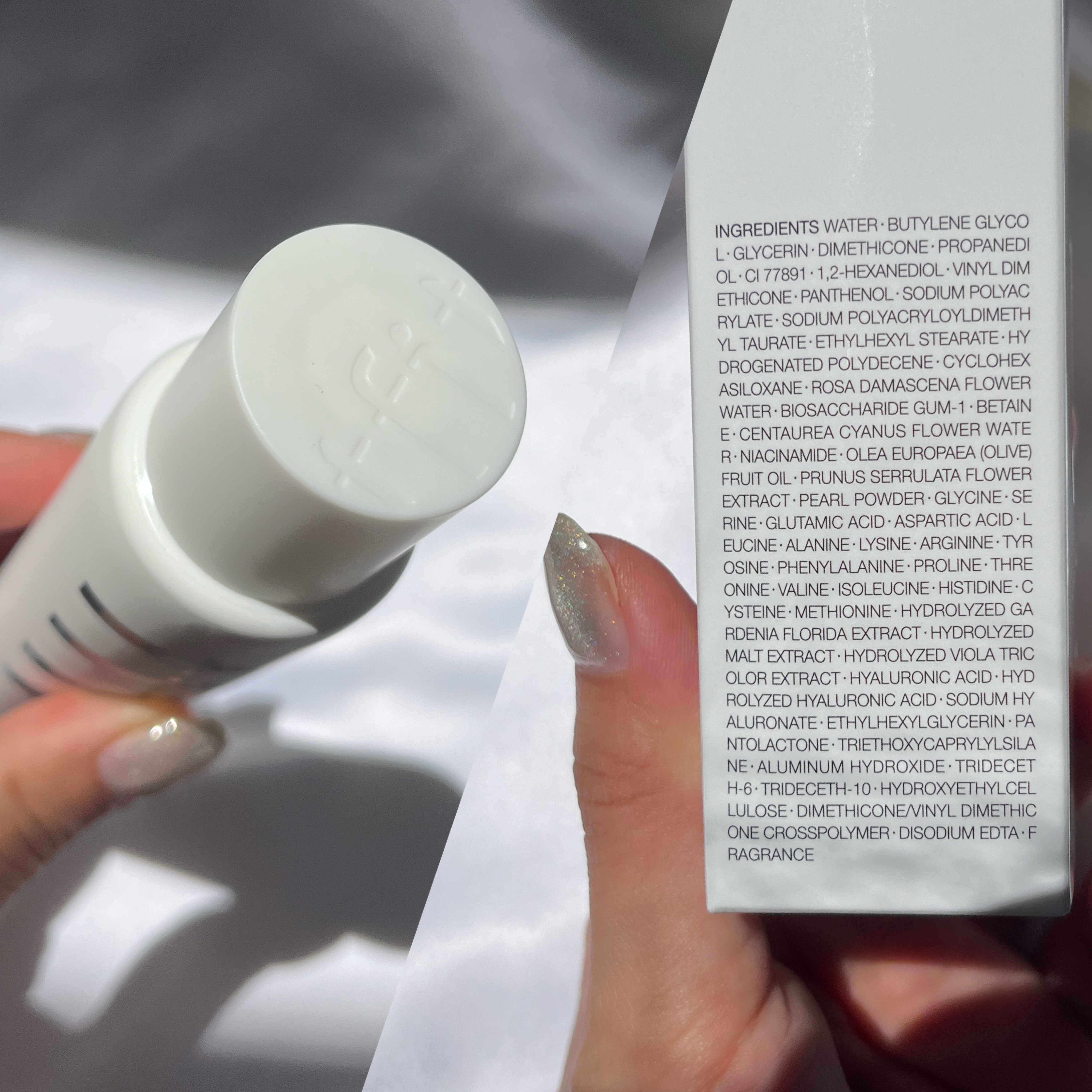 - <ルミネールスキップトーンアップクリーム> 水、BG、グリセリン、ジメチコン、プロパンジオール、酸化チタン、1,2-ヘキサンジオール、ビニルジメチコン、パンテノール、ダマスクバラ花水、ヤグルマギク花水、ナイアシンアミド、オリーブ果実油、ヤマザクラ花エキス、グリシン、セリン、グルタミン酸、アスパラギン酸、ロイシン、アラニン、リシン、アルギニン、チロシン、フェニルアラニン、プロリン、トレオニン、バリン、イソロイシン、ヒスチジン、システイン、メチオニン、加水分解クチナシエキス、加水分解バクガエキス、加水分解サンシキスミレエキス、ヒアルロン酸、加水分解ヒアルロン酸、ヒアルロン酸Na、エチルヘキシルグリセリン、ポリアクリル酸Na、ポリアクリロイルジメチルタウリンNa、ステアリン酸エチルヘキシル、水添ポリデセン、シクロヘキサシロキサン、ビオサッカリドガム-1、ベタイン、パール、パントラクトン、トリエトキシカプリリルシラン、水酸化Al、トリデセス-6、トリデセス-10、ヒドロキシエチルセルロース、(ジメチコン/ビニルジメチコン)クロスポリマー、EDTA-2Na、香料