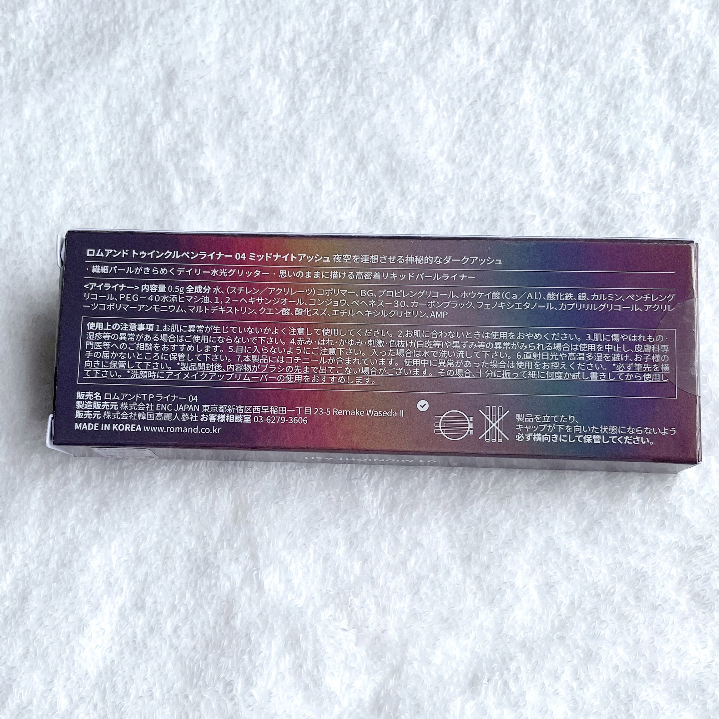 かなりお得🉐 #04 ミッドナイトアッシュは色が強くで過ぎない発色だけど、絶妙に目力を強調させてくれるカラーとっても使いやすいカラー♡ 派手すぎない繊細パールが上品にキラキラ&目元に光が入ってうるうるして見える✨ 筆先が柔らかくスルスルと描きやすかった❤︎