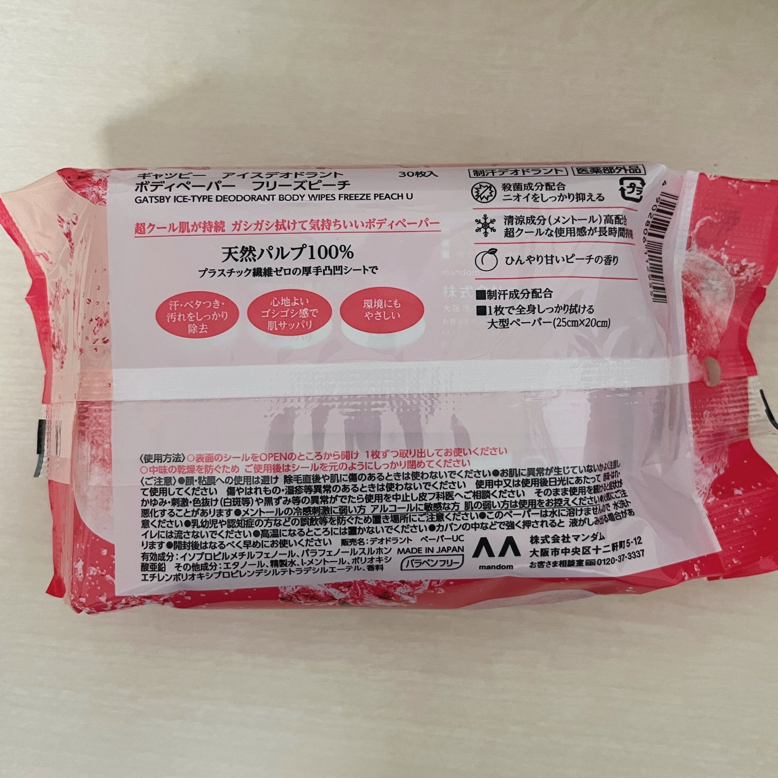 ガシガシ拭けて気持ちいい〜ベタベタ汗もすっきりさっぱり!◻️GATSBYアイスデオドラントボディペーパーアイスフルーティ<徳用タイプ>¥605(税込)人気のギャツビーのボディシート使ってみたよ!シートは凹凸のある天然パルプ素材でどちらかという...