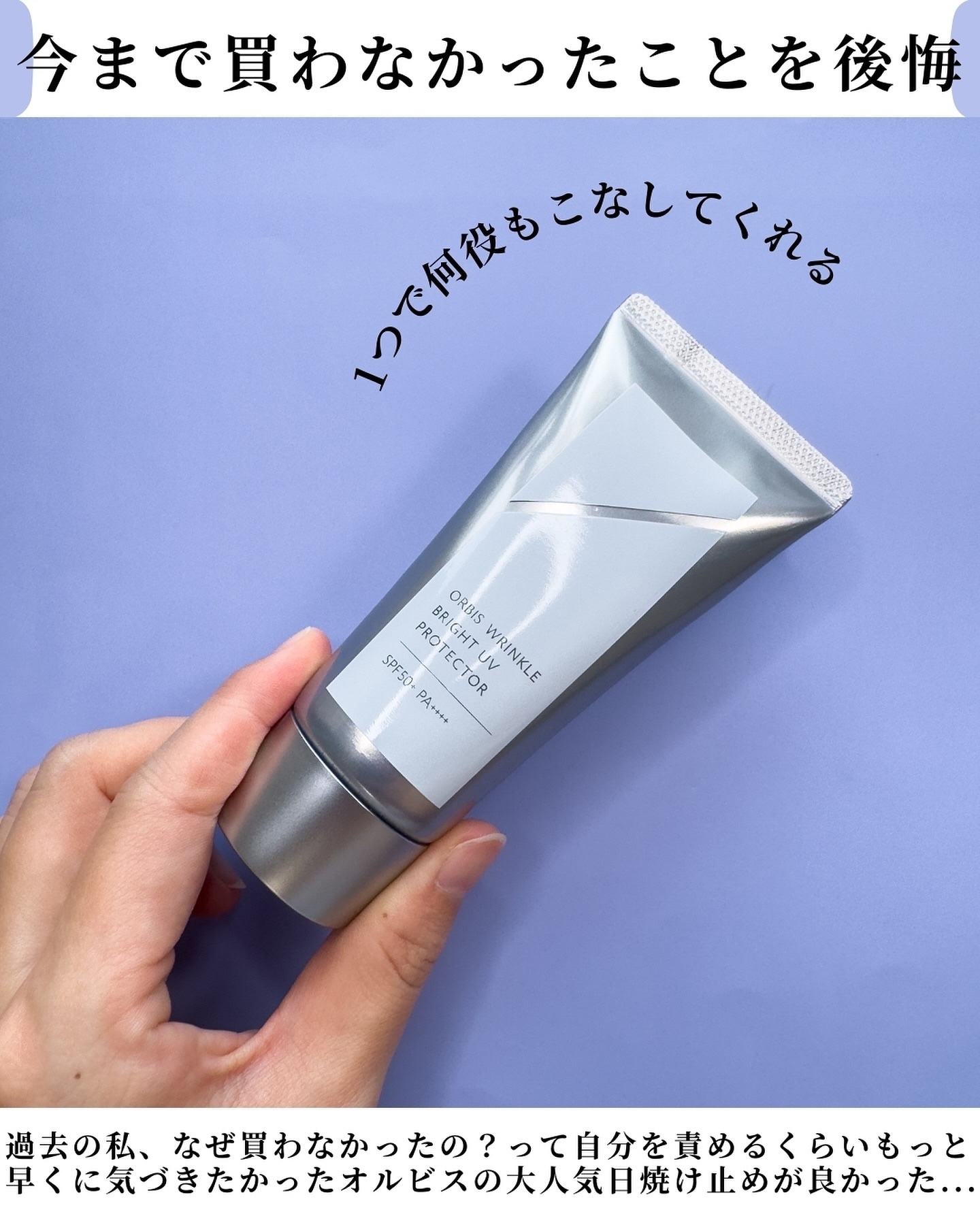 攻めて守るオルビスのバズり日焼け止め☀️ SPF50+•PA++++とかなり高い数値のUVカット効果でシワ改善や美白ケア、エイジングケアができちゃう日焼け止め🫶🏻 なめらかでコクのあるテクスチャ。とにかく高保湿で時間が経っても乾燥せず、サラッと系の日焼け止めばかり使ってる私的にとってはかなり感動ものでした😌💓 下地としても使えますが、カバー力やトーンアップ力はないのでカバー力が欲しいという方は別途下地があったほうが良き◎